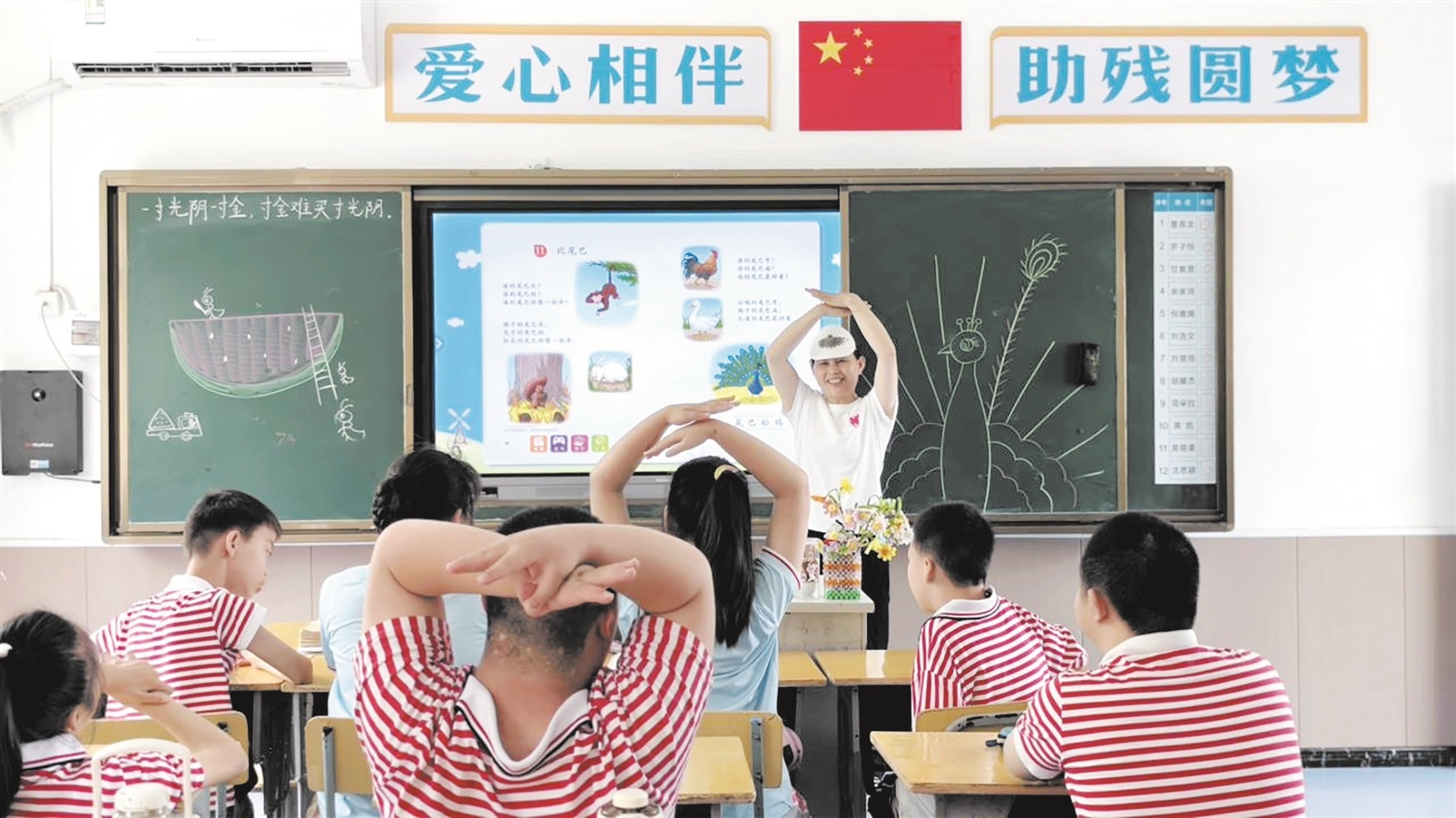 近日,在咸宁市特殊教育学校培智四班,患有脑瘫的15岁学生小凯口齿不清,却努力清晰地告诉记者:“我喜欢妈妈老师,妈妈老师爱我。”话音落下,一旁的雷会星老师瞬间红了眼眶。