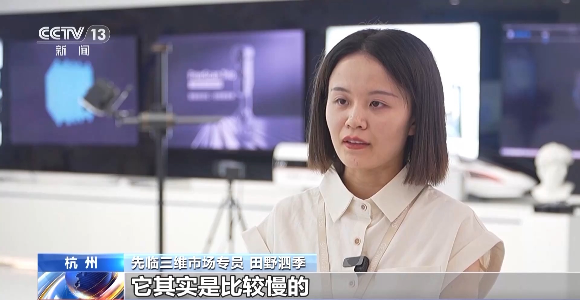 先临三维市场专员 田野泗季:应用于文博艺术领域,传统获得文物的数据,是需要拍照或者是设计师去手绘,它其实是比较慢的。还广泛应用于汽车工业、民用航空、工程机械、能源重工、电子电器、齿科医疗等,来帮助千行百业提质增效。
