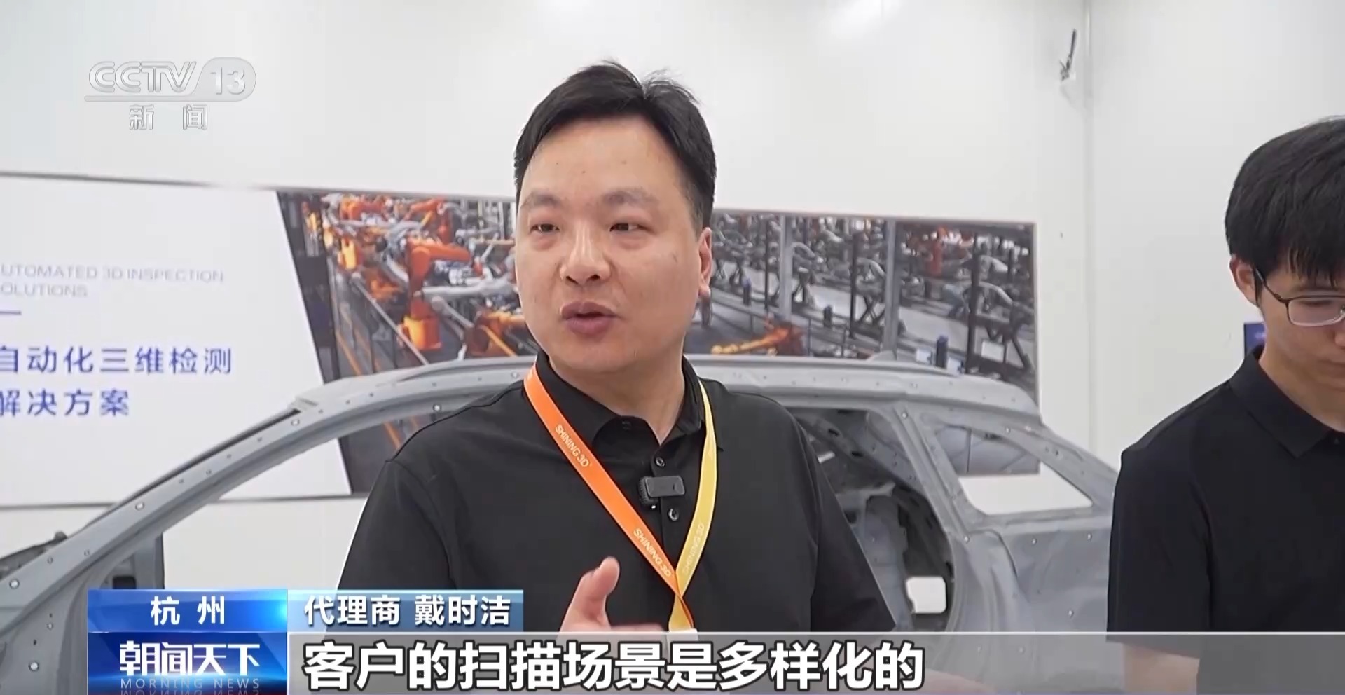 用这个设备轻轻一扫,就能实现对真实物体的高精度3D建模。扫描小件,精度能达到5微米,相当于头发丝的1/10。扫描大件,只需要8分钟,就能得到一辆汽车的三维数据。这样的高精度三维视觉技术,还可以实时生成“数字人”。