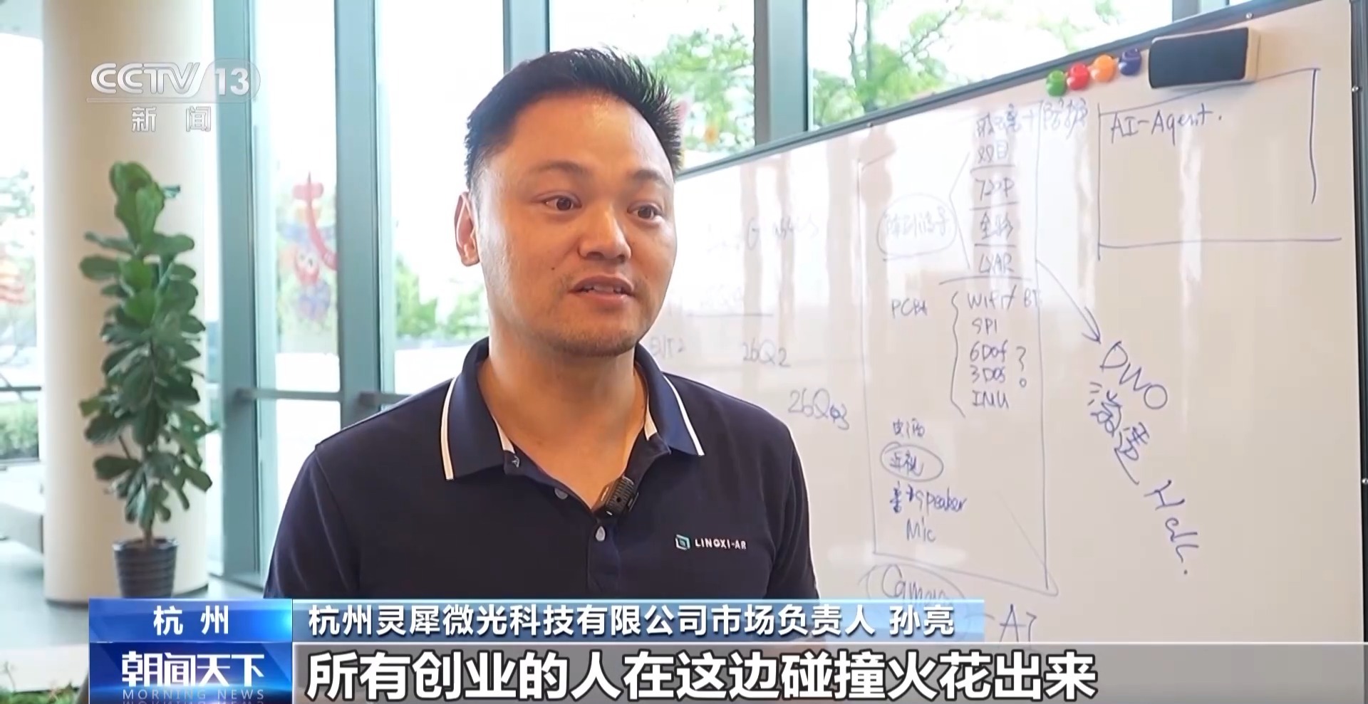 杭州灵犀微光科技有限公司市场负责人 孙亮:有做内容的,有做硬件的,所有创业的人在这边碰撞火花出来,像一个创客中心的这种状态。
