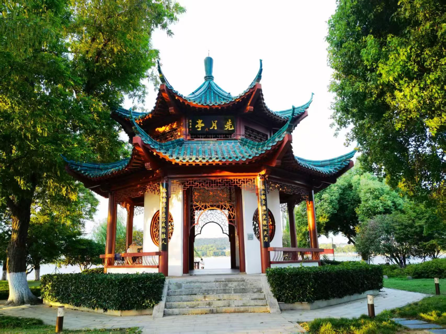 “先月亭”是武汉东湖风景区的一道标志性景观。该亭碧瓦飞檐,高台朱槛,三面环水,直探湖心。这里春有垂柳抚波,夏有荷风送爽,秋有桂香沁脾,冬有银装静谧。每当皓月当空时,天上明月与湖中月影交相呼应,华亭双月,天水相连,美不胜收。