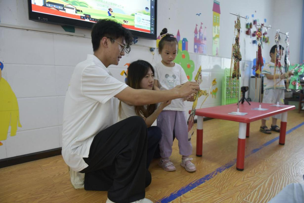 荆楚网(湖北日报网)讯(通讯员 黄昌哲、梁好、王子涵)近日,湖北工程学院土木工程学院“一路‘砼’行”暑期社会实践团走进接官乡幼儿园,带来一堂别开生面的“遇见西游 玩转皮影”非遗课程,让孩子们在趣味互动中感受传统皮影艺术的魅力。