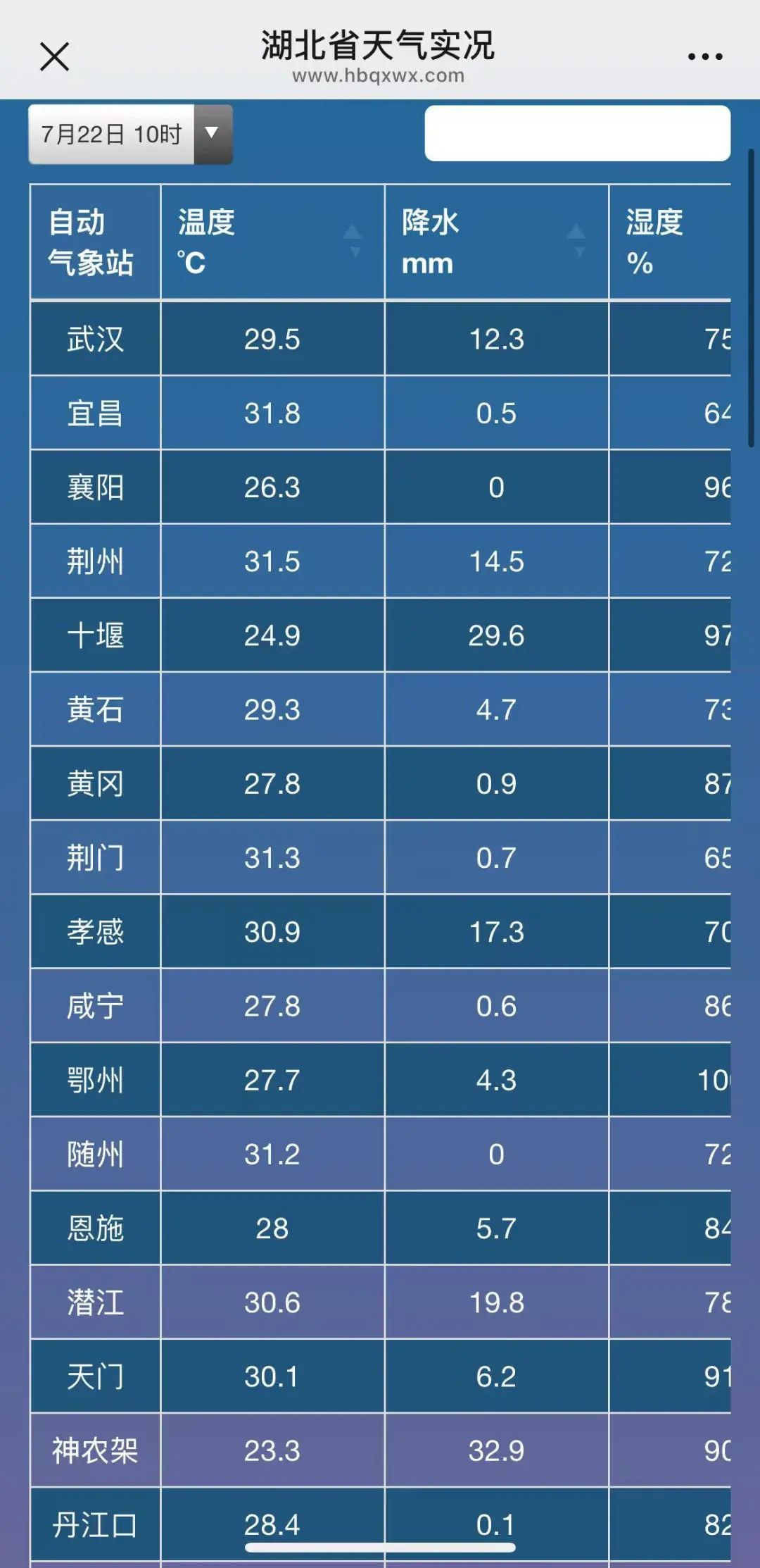 气象监测显示,上午10时许,武汉仅29.5℃,放眼全省,实时气温在23-31℃,且大部分地区气温都不到30℃,尤其是中东部比昨日下降3-7℃。