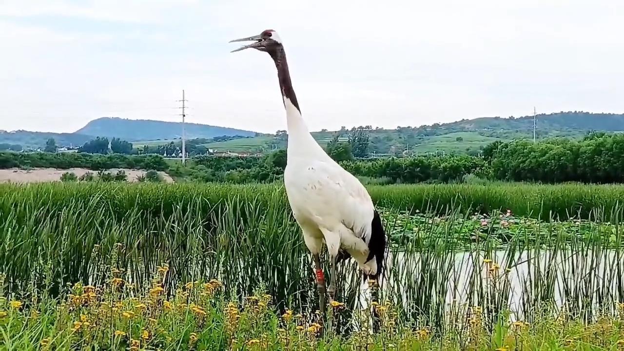 伴侣走失丹顶鹤原地哀鸣不吃不喝(视频截图)