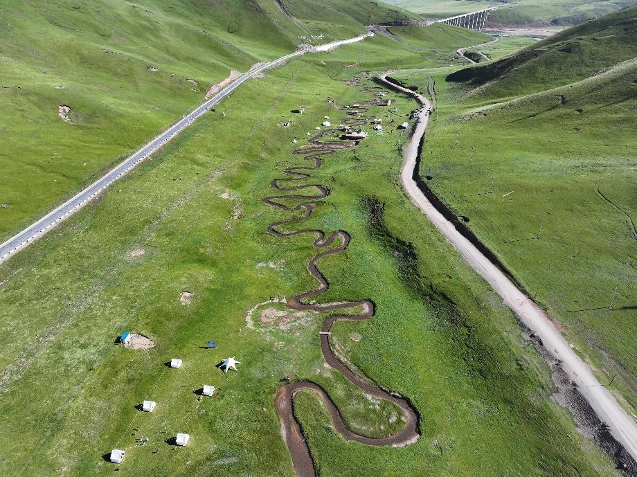 通天河上游,辫状河道纵横,沙洲草本植被茂盛,根系如“生物锚点”,增强抗蚀能力、维持河道短期稳定;