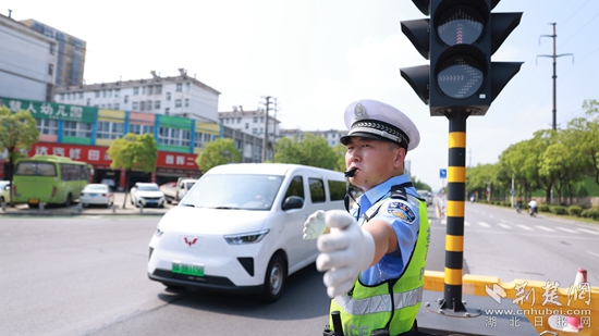 民警在烈日下指挥交通。通讯员 供图