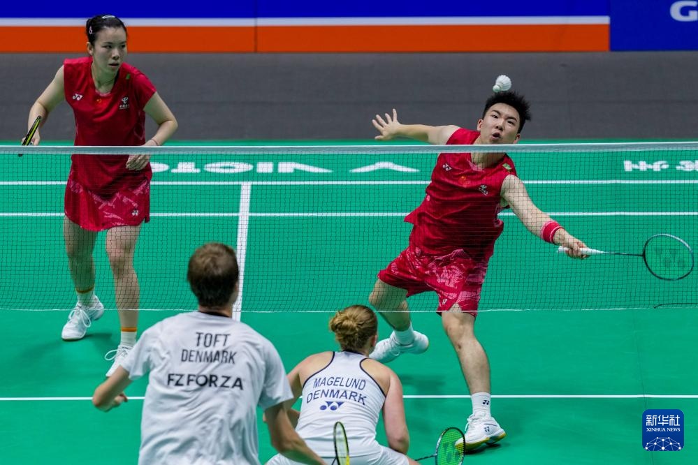 当日,在江苏常州举行的2025中国羽毛球公开赛混双首轮比赛中,中国组合郭新娃/陈芳卉2比1战胜丹麦组合杰斯帕/艾美丽,晋级下一轮。