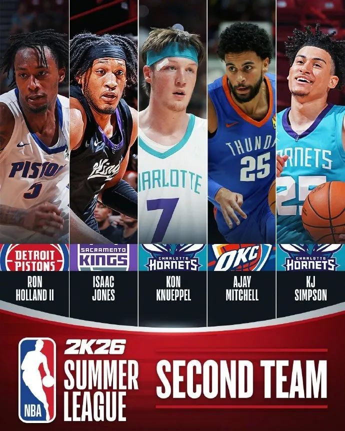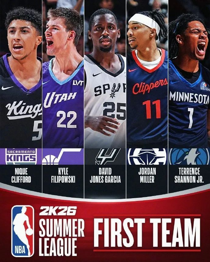 NBA官方今日公布了2025年NBA夏季联赛最佳阵容一阵和最佳阵容二阵