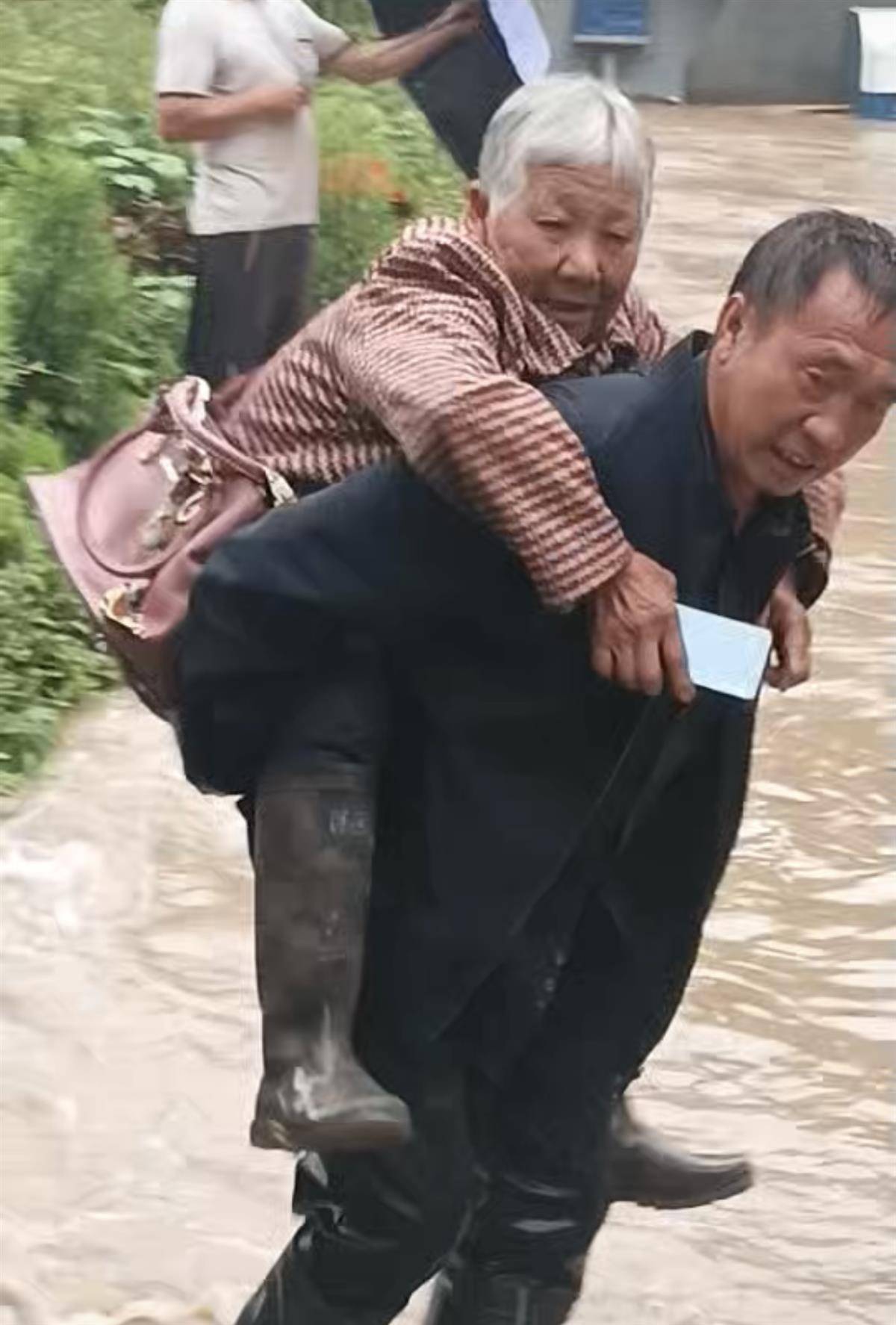 “要不是你,我真不知道该怎么办了。”从杨才虎的背上下来,76岁的毛美钢看着他转身涉水走去,抬起衣袖抹了一下眼角。