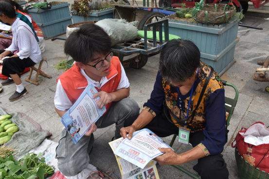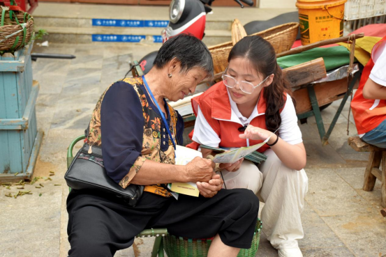 在农贸市场,队员马燕把真实案例改编成“三句半”,“陌生来电要警惕,自称公检法别轻信,转账汇款需核实,报警!”“投资理财要谨慎,高额回报是陷阱,天上不会掉馅饼,勿信!”,围观群众边笑边记;在独居老人张奶奶家,队员张覃旺蹲在地上手把手教她设置“国家反诈中心”APP预警。一位大爷听完拉着队员田逸飞同学感慨:“你们讲得明白,我这‘老古董’也听得懂!”