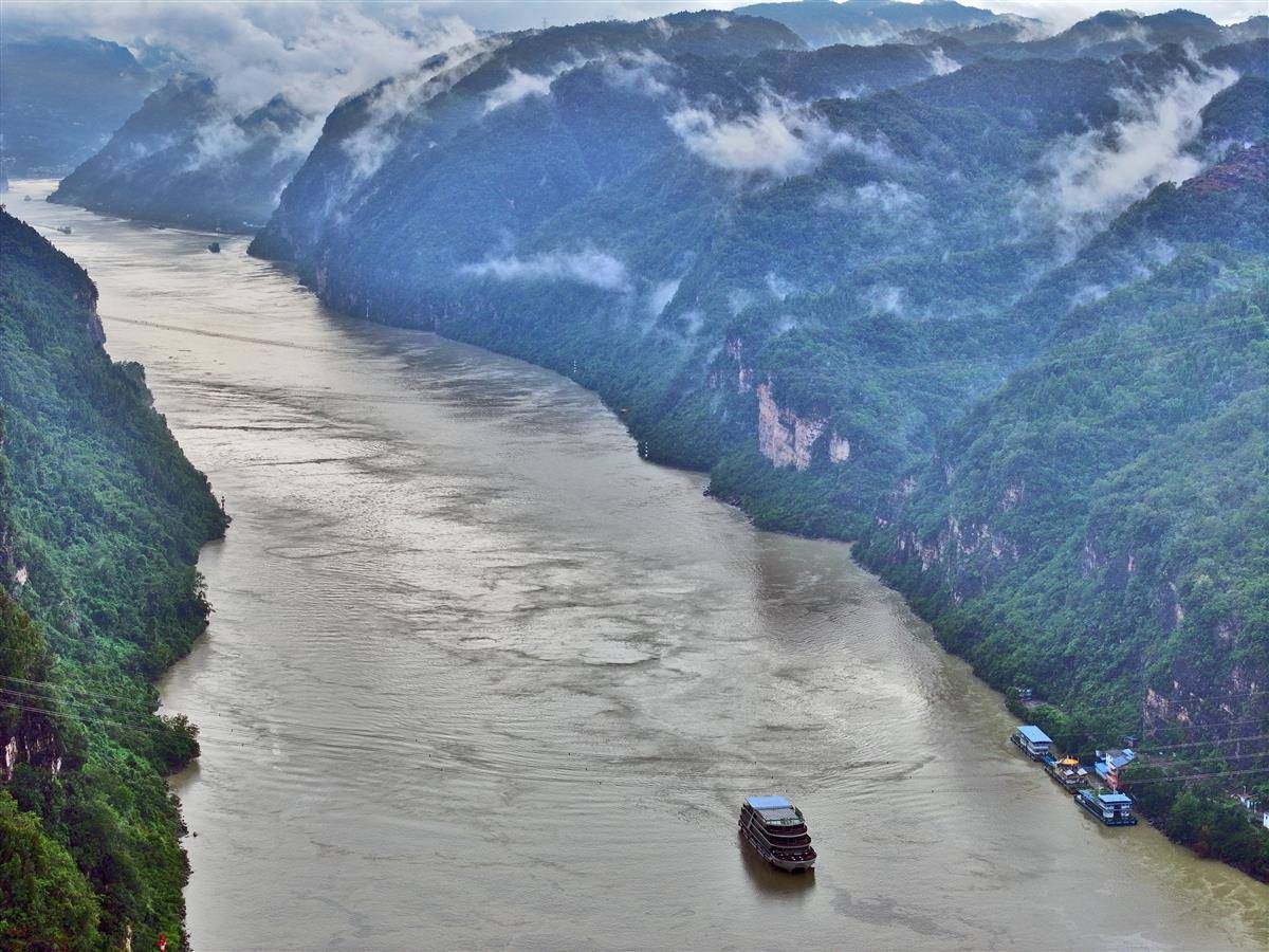 7月23日,暴雨初歇,长江宜昌段美成了水墨丹青。浩荡江水之上,西陵峡两岸山峦尽披薄纱,云雾如雪白绸带,缠绕于峭壁之间,一时难分云海与江水。(湖北日报全媒记者 刘曙松 摄)