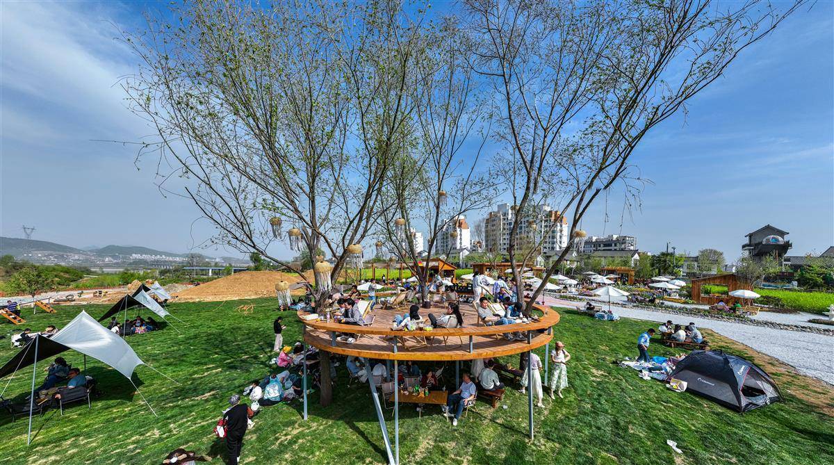咖啡馆全开放式,没有围墙,没有天花板,连座位都是随性的,树屋、秋千、露营椅,或者干脆坐在草坪上,这让“落日咖啡馆”成为许多人心中“可以深呼吸的地方”。
