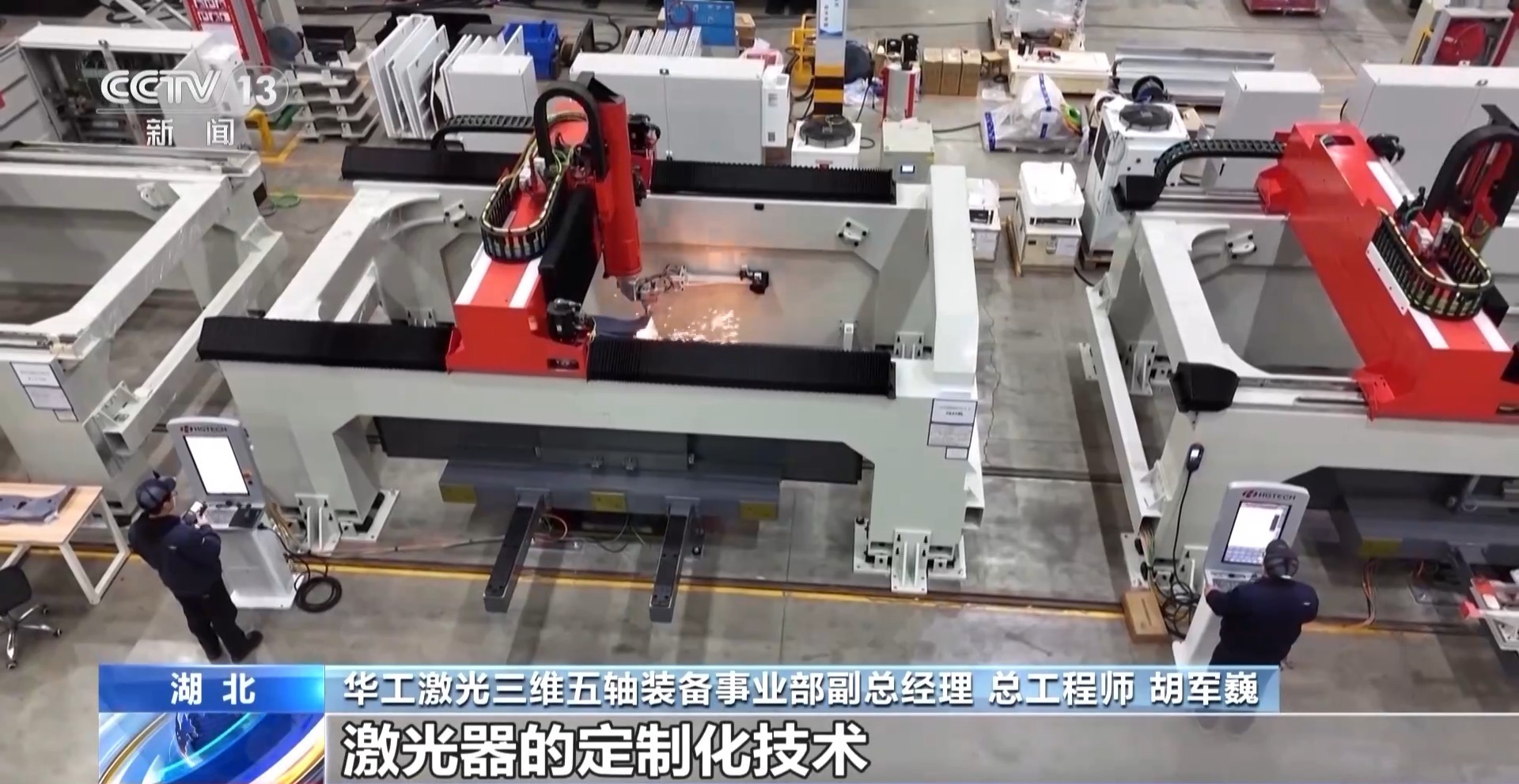 华工激光三维五轴装备事业部副总经理 总工程师 胡军巍:过去这些设备都是国外,包括美国波音、欧洲空客的关键核心加工装备。我们在数控系统、激光加工头、激光器、工业编程软件,都已经完成了国产化的攻关和替代。核心功能我们是优于国外的设计标准,目前已经实现了该装备的量产。