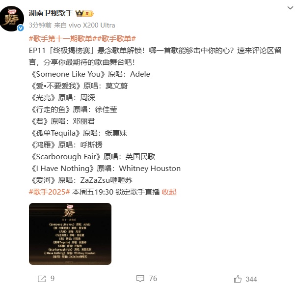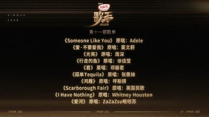 《歌手2025》第十一期「终极揭榜赛」悬念歌单解锁: