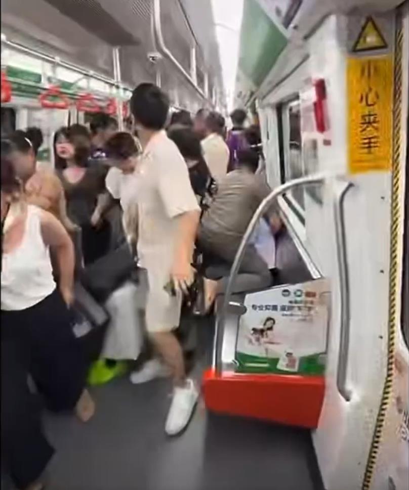 现场视频显示,在一节地铁车厢内,众多乘客纷纷向车厢外撤离,视频中有人喊“怎么了”,其他人则说道“着火了”。