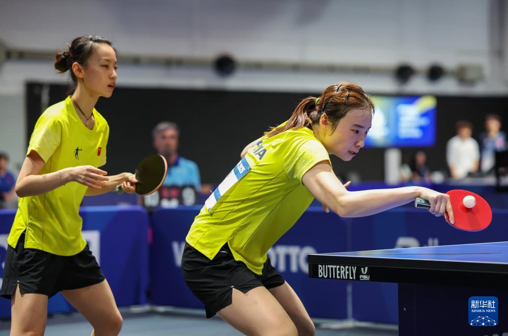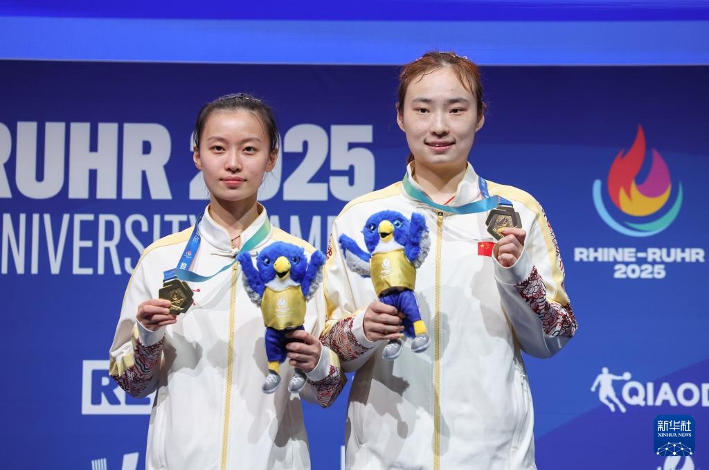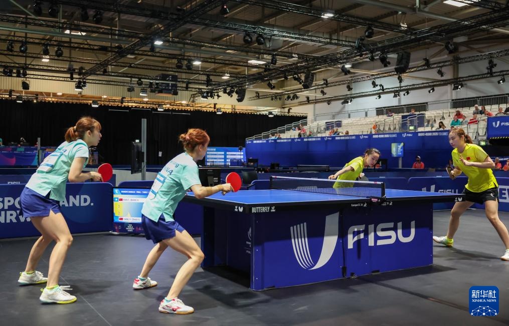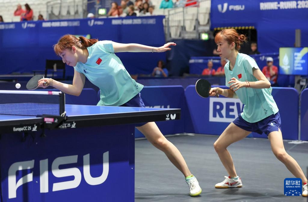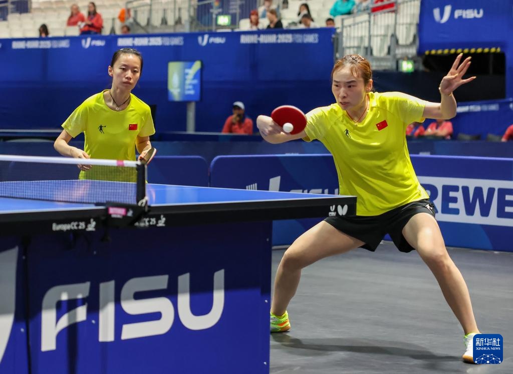 当日,在德国埃森进行的2025年莱茵-鲁尔世界大学生夏季运动会乒乓球女双决赛中,中国组合韩菲儿/王晓彤4比0战胜中国组合杨屹韵/赵尚,获得冠军。