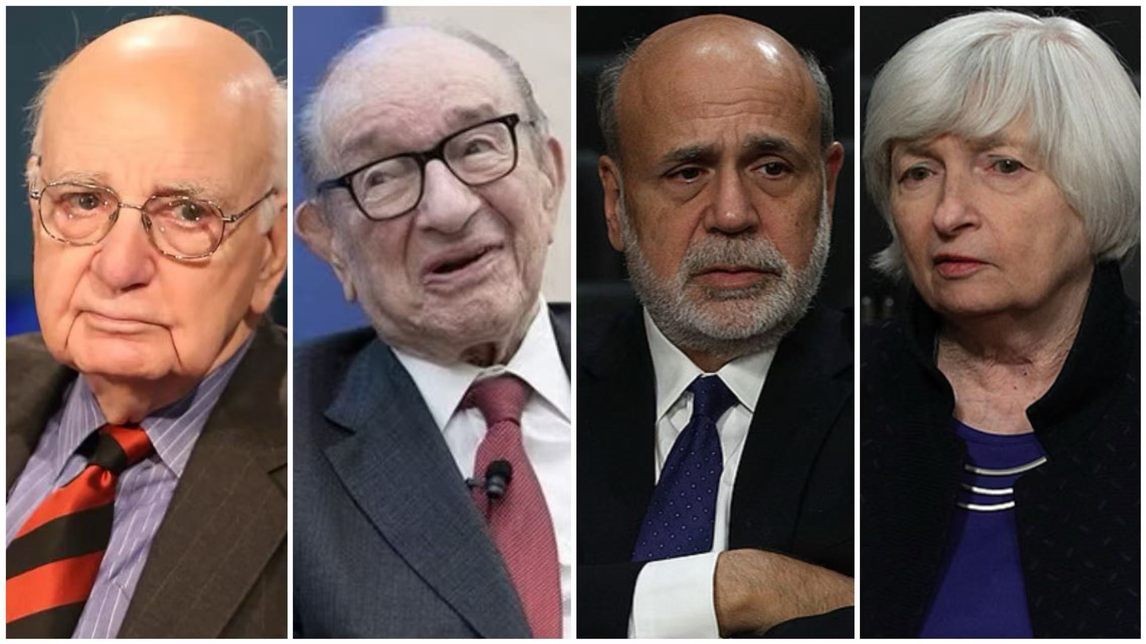△从左至右:沃尔克、格林斯潘、伯南克和耶伦(资料图)
