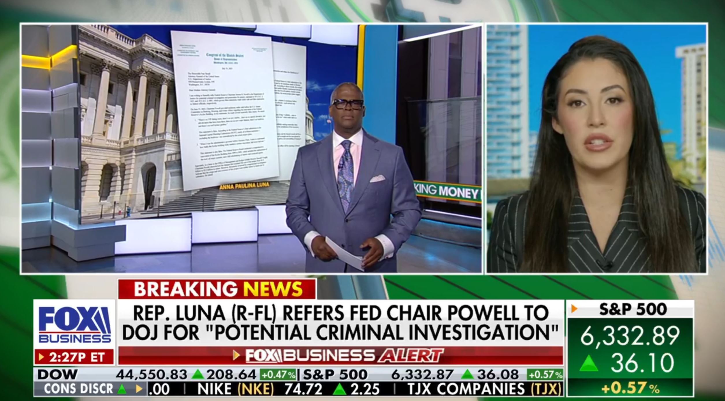 但是,美国佛罗里达州共和党籍众议员安娜·保利娜·卢纳上周在社交媒体上发文称,她已向美国司法部举报鲍威尔,称他在美联储总部25亿美元翻新项目中涉嫌“作伪证”。