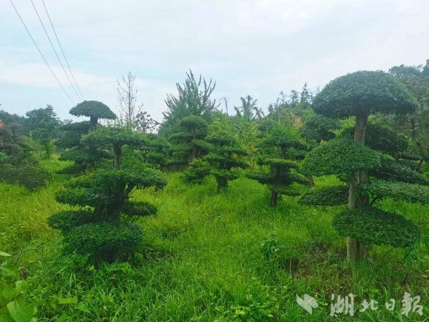 如今,基地里的桂花、罗汉松、紫薇、茶花等苗木长势喜人,一片片绿意盎然的苗木林成了刘小勇的“绿色银行”。