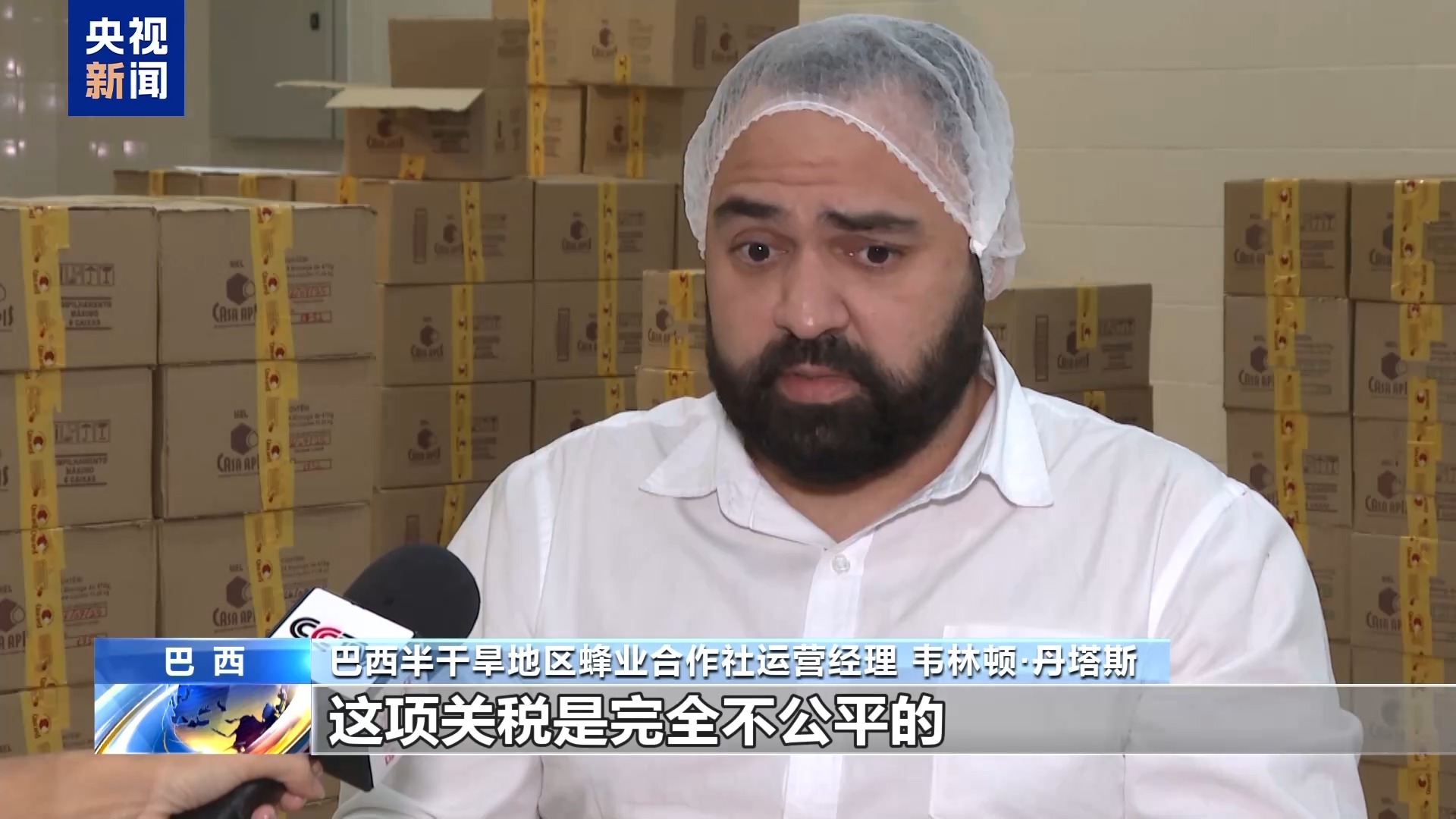 巴西半干旱地区蜂业合作社运营经理 韦林顿·丹塔斯:这项关税是完全不公平的,因为贸易平衡,完全偏向美国。关税将对整个蜂蜜产业链造成巨大的冲击。许多企业目前库存很高,因此可能遭受重大损失。