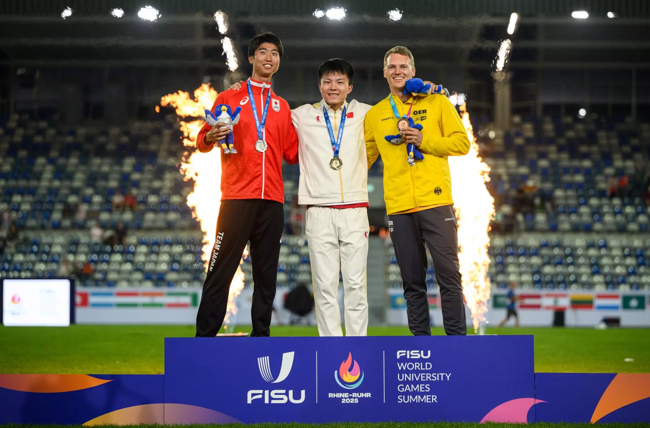 当地时间7月24日,凭借舒衡在男子跳远决赛中跳出8米09的成绩,中国大学生体育代表团收获2025年莱茵-鲁尔大运会田径项目首枚金牌。