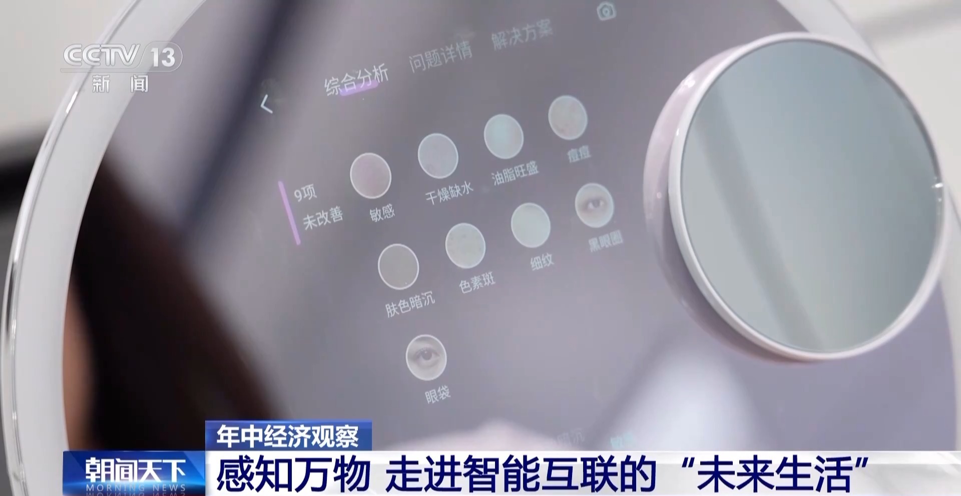 总台央视记者 张丛婧:照一下镜子就能识别出皮肤状态,还能给出定制的护肤和化妆方案,是因为里面安装了触摸、视觉、红外等各种传感器,从而能够快速地采集面部健康数据,实现智能化分析。
