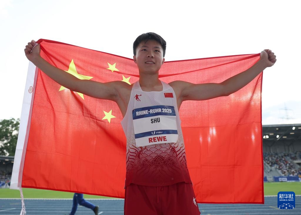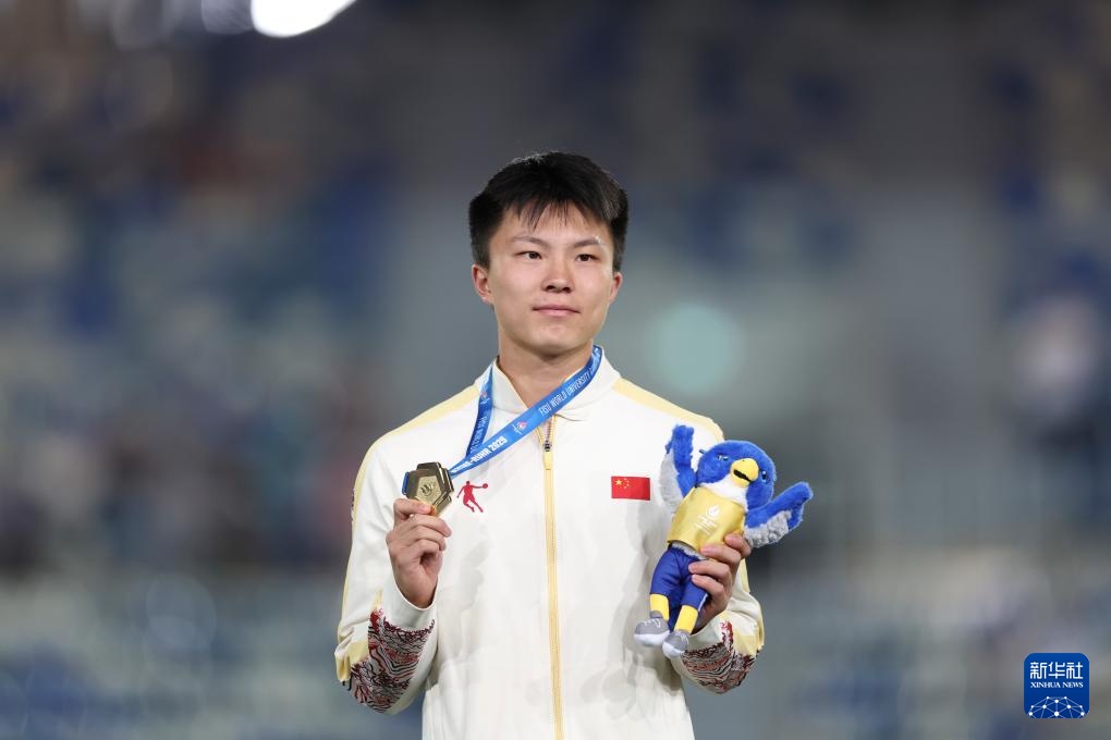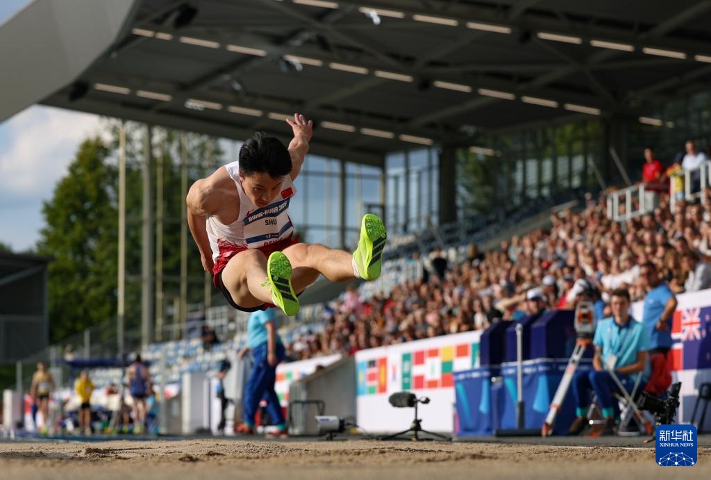 当日,在德国波鸿举行的2025年莱茵-鲁尔世界大学生夏季运动会田径男子跳远决赛中,中国选手舒衡以8米09的成绩夺得冠军。