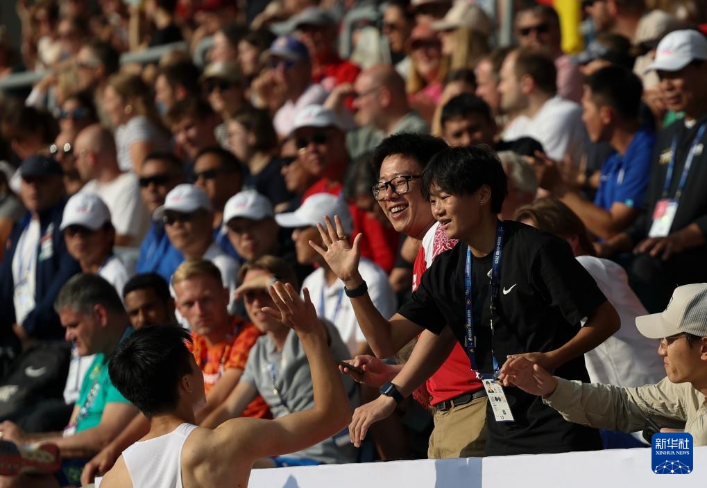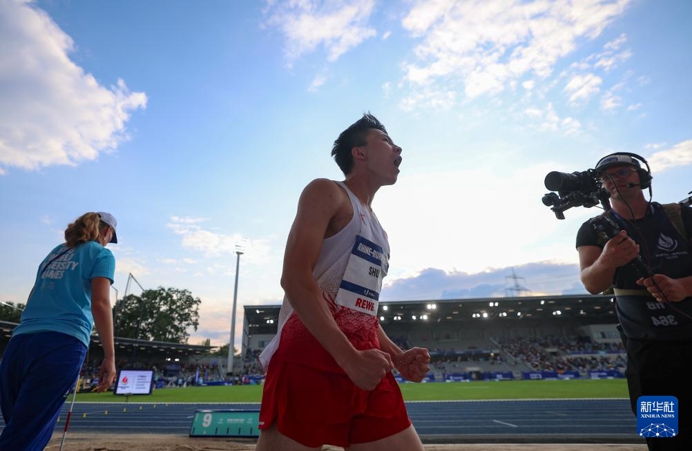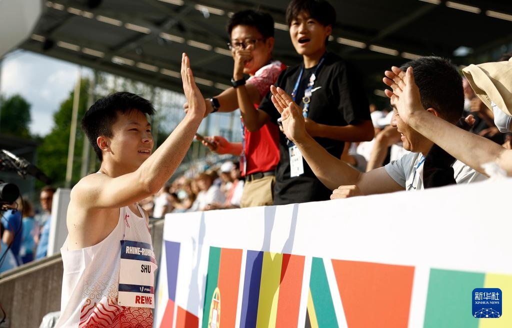 7月24日,舒衡在比赛后庆祝夺冠。新华社发(乌尔里希·胡夫纳格尔摄)