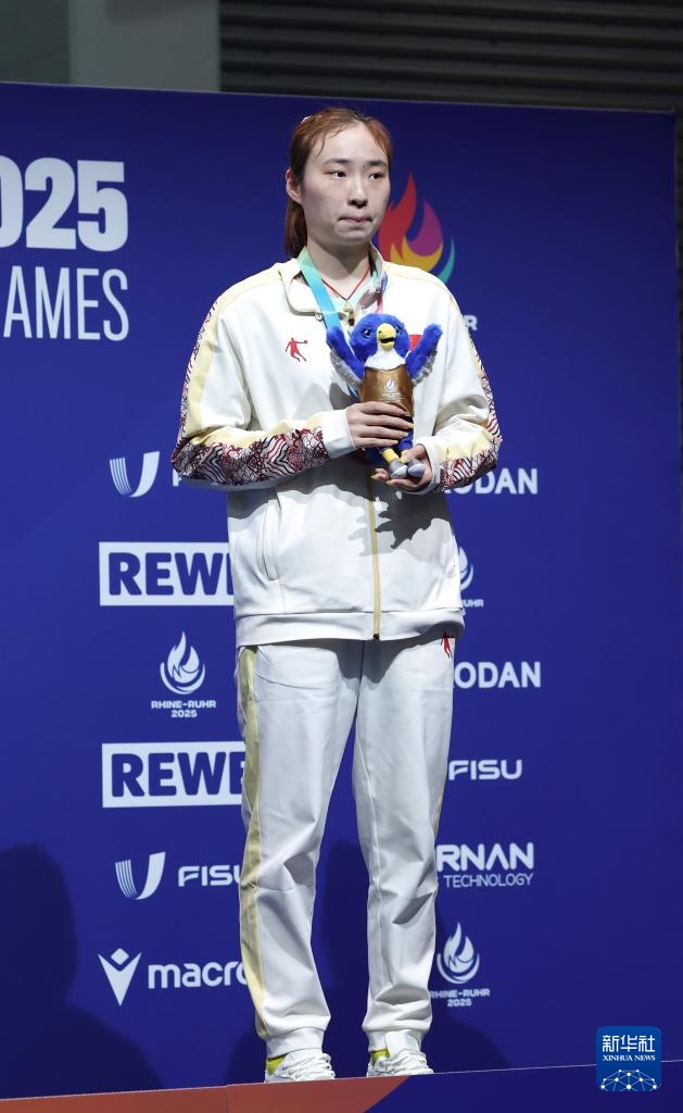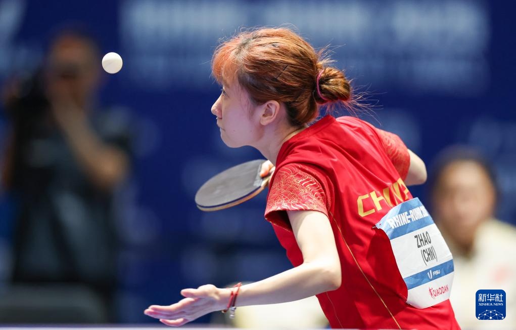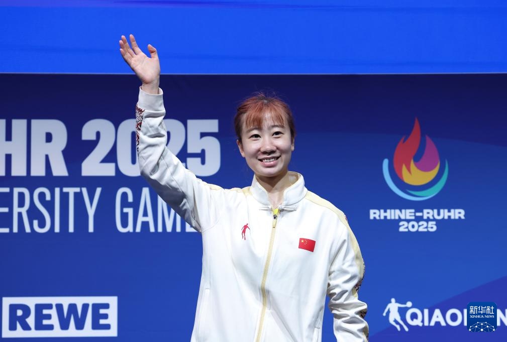 当日,在德国埃森进行的2025年莱茵-鲁尔世界大学生夏季运动会乒乓球女单决赛中,中国选手赵尚4比0战胜中国台北选手黄愉倢,获得冠军。