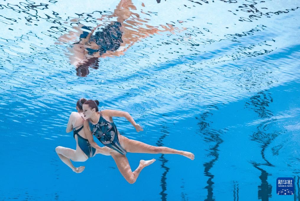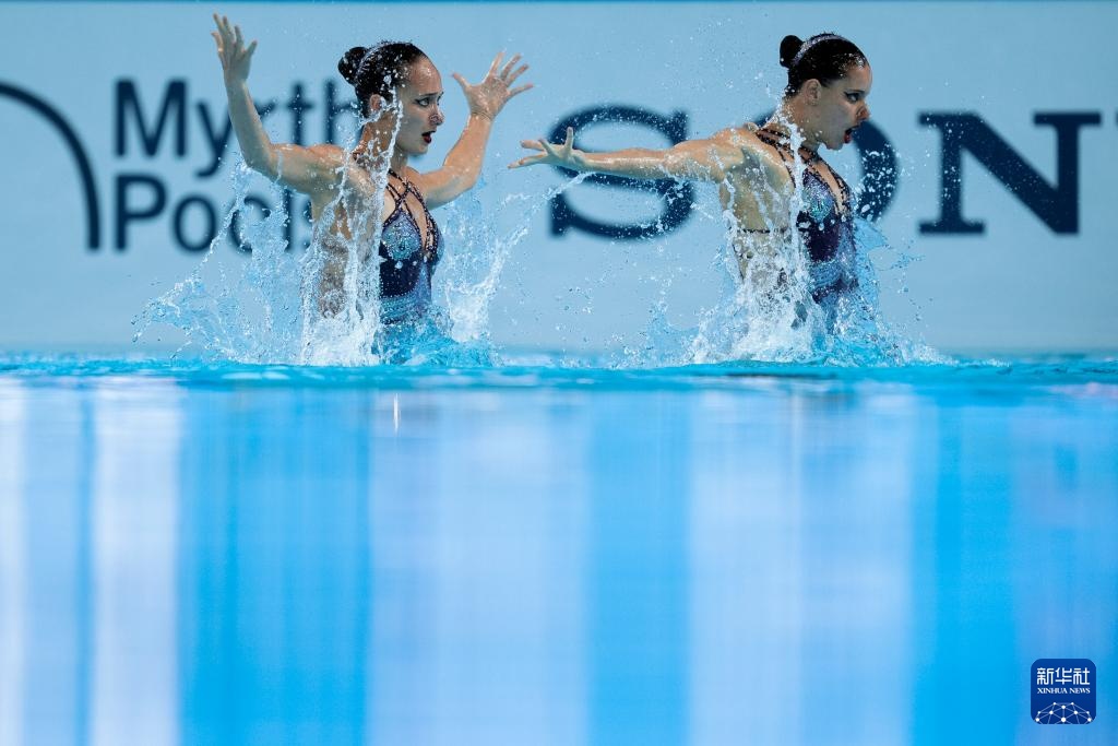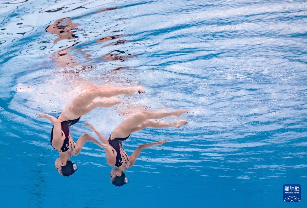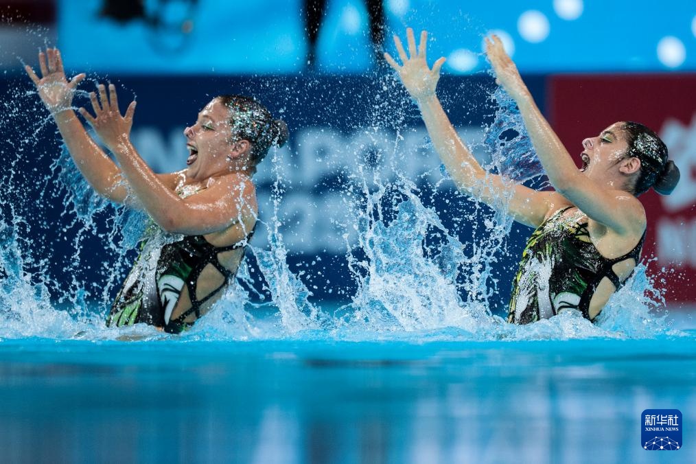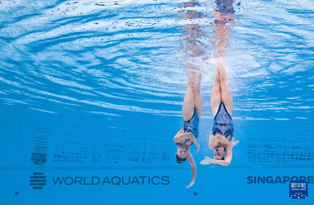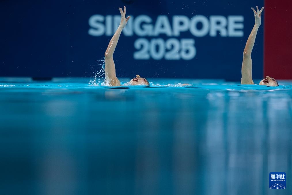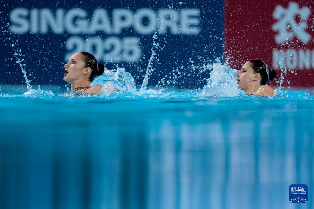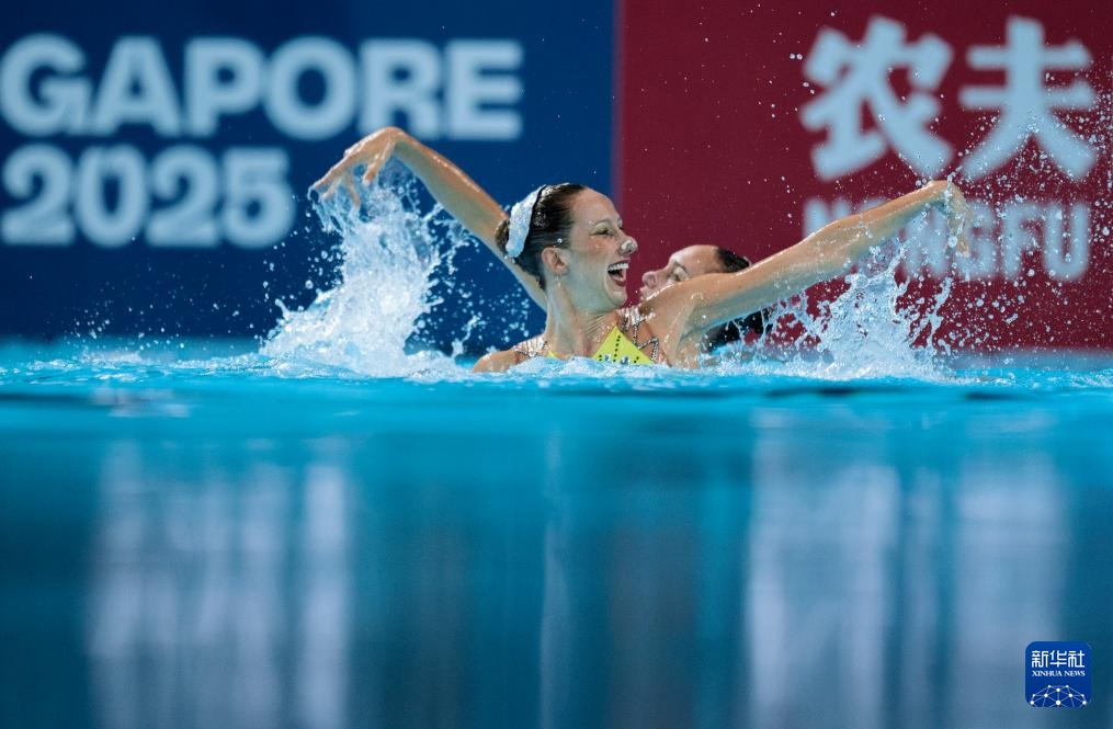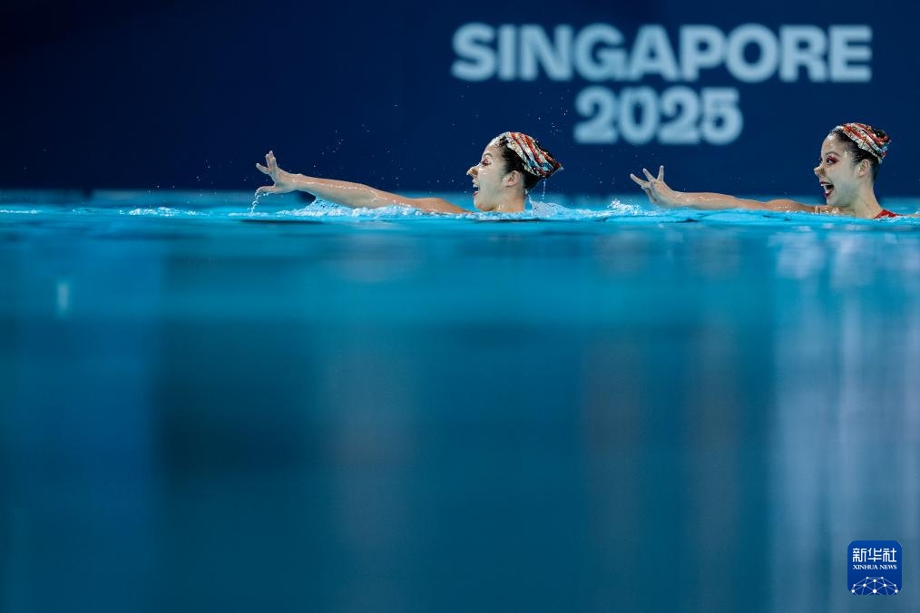 当日,2025年世界游泳锦标赛花样游泳女子双人自由自选决赛在新加坡举行。