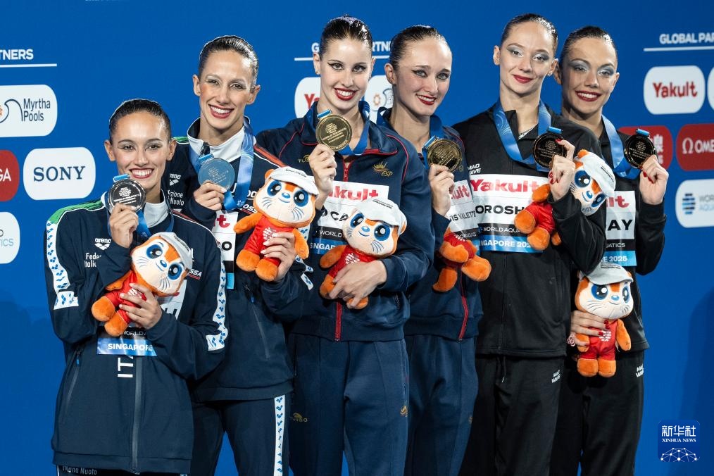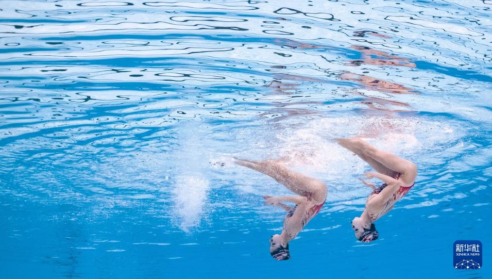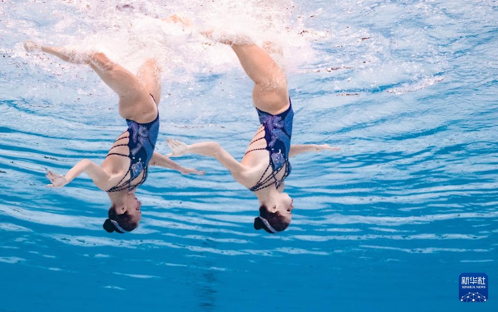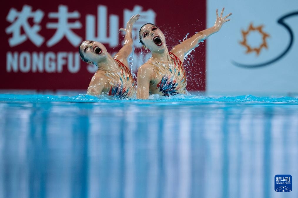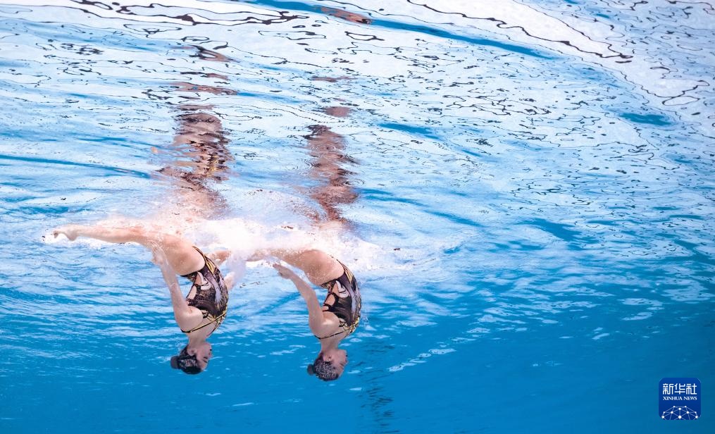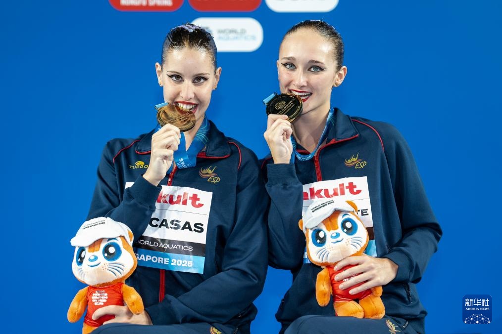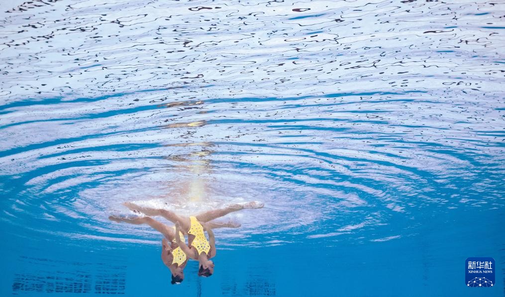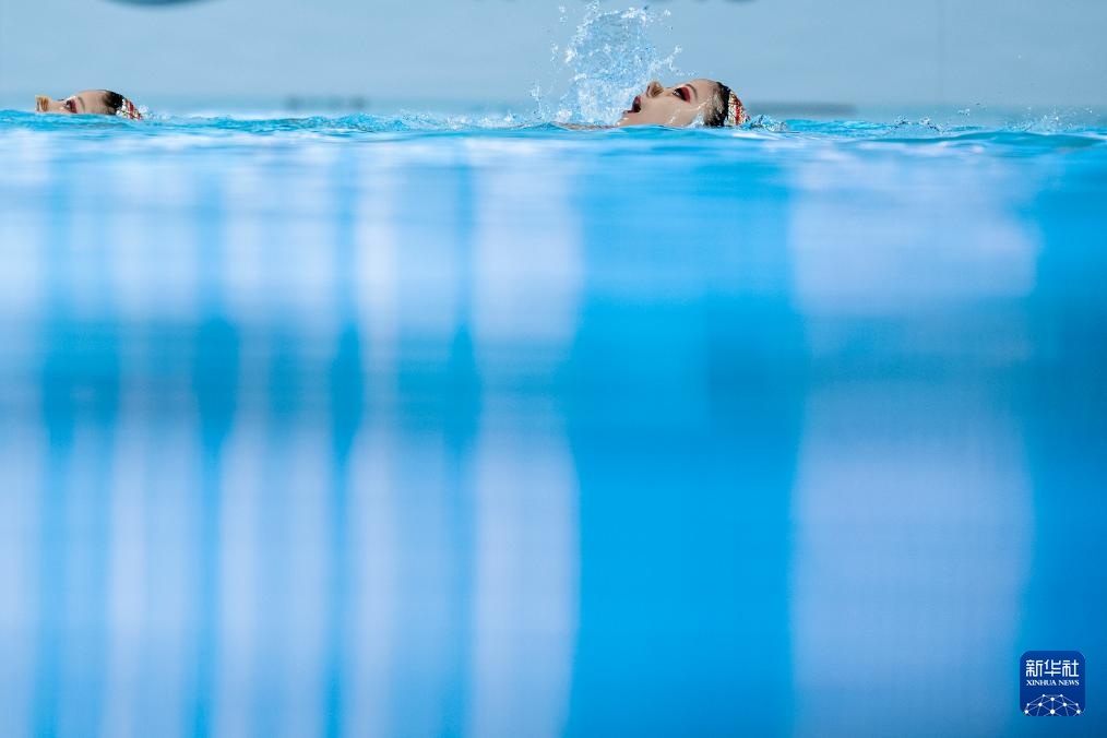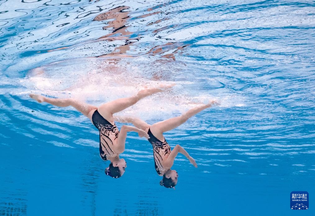 当日,2025年世界游泳锦标赛花样游泳女子双人自由自选决赛在新加坡举行。