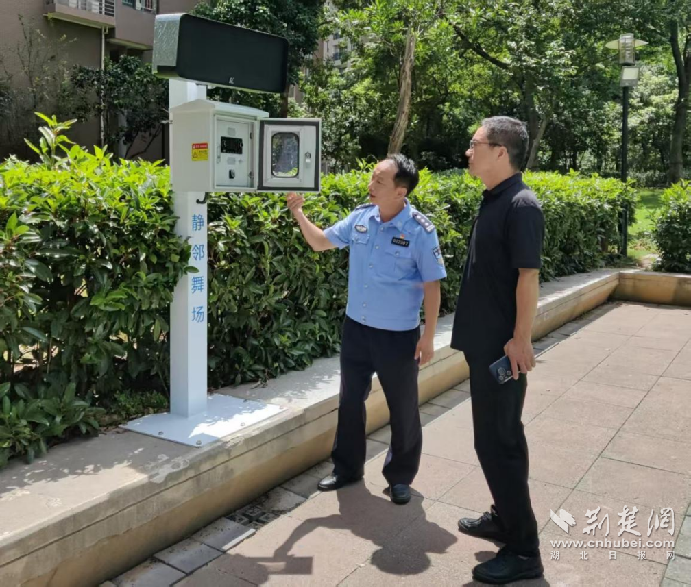 科技赋能的探索并未止步。红郡小区也曾是噪音投诉的“老大难”,光靠人劝效果不大。今年5月,茅店派出所、关东街道和光电园积极穿针引线,社区成功引入辖区光电园企业先进的声帘定向声技术。这技术能将声音精准“锁”在指定区域,大音量像手电筒的光束一样,只朝跳舞人群方向传播,实现了“舞区有声、周边静谧”。