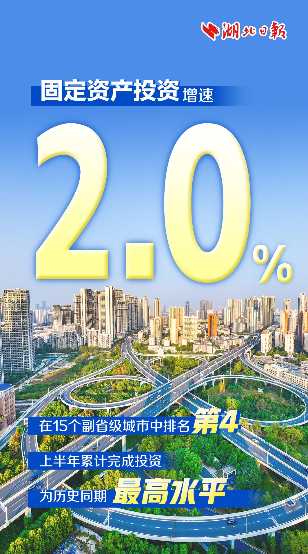看投资,武汉固定资产投资同比增长2%,在全国15个副省级城市中排名第四,上半年累计完成投资为历史同期最高水平。其中工业投资1167亿元,总量居全国所有城市第二位,达到全年计划52%;增速12.1%,连续18个月保持两位数增长。