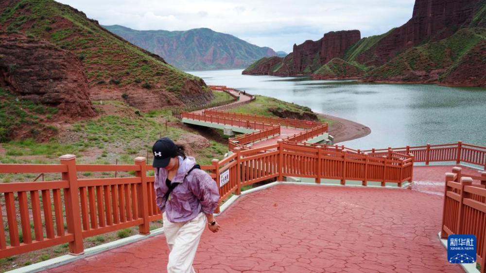 7月24日,游客在坎布拉世界地质公园景区游玩。