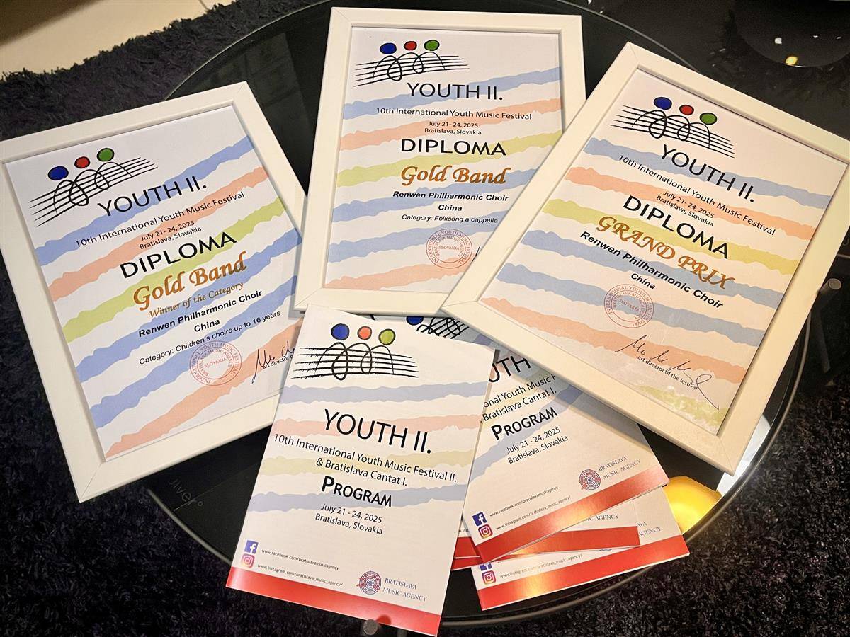 据悉,第十届国际青少年音乐节暨布拉迪斯拉发康塔塔合唱节,吸引了来自全球各地的音乐团参加,包括儿童、青年和成人管弦乐队、合唱团等。此次评委团阵容强大,包括来自美国、波兰、斯洛伐克、意大利等国的专家学者。一位来自意大利的评委在颁奖典礼后,立即向合唱团发出了邀请,希望合唱团能参加全球六大顶级赛事之一的阿雷佐国际合唱节。