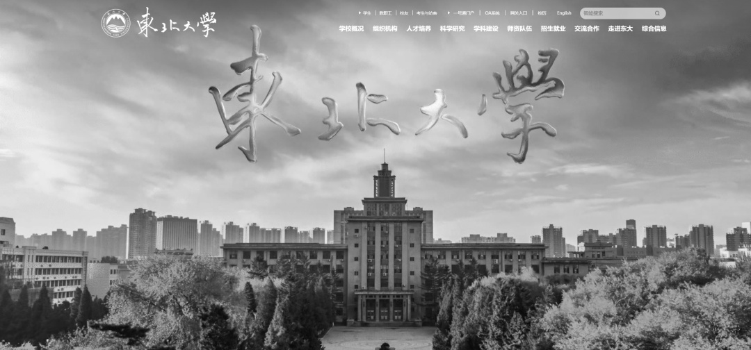 7月25日,东北大学官网显示,网站已变黑白。