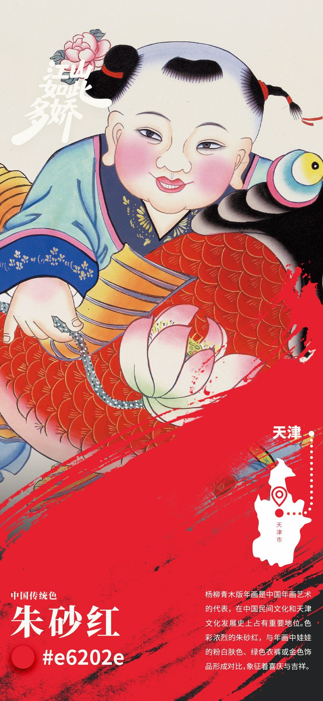 杨柳青年画作坊中,朱砂红的鲤鱼在宣纸上鲜活跃动。《莲年有馀》是杨柳青年画中最具代表性的作品之一。从这幅画中能看出天津人身上自带的豁达乐天的松弛感,在这种松弛感背后,又有一种充满干劲儿的津门气质。