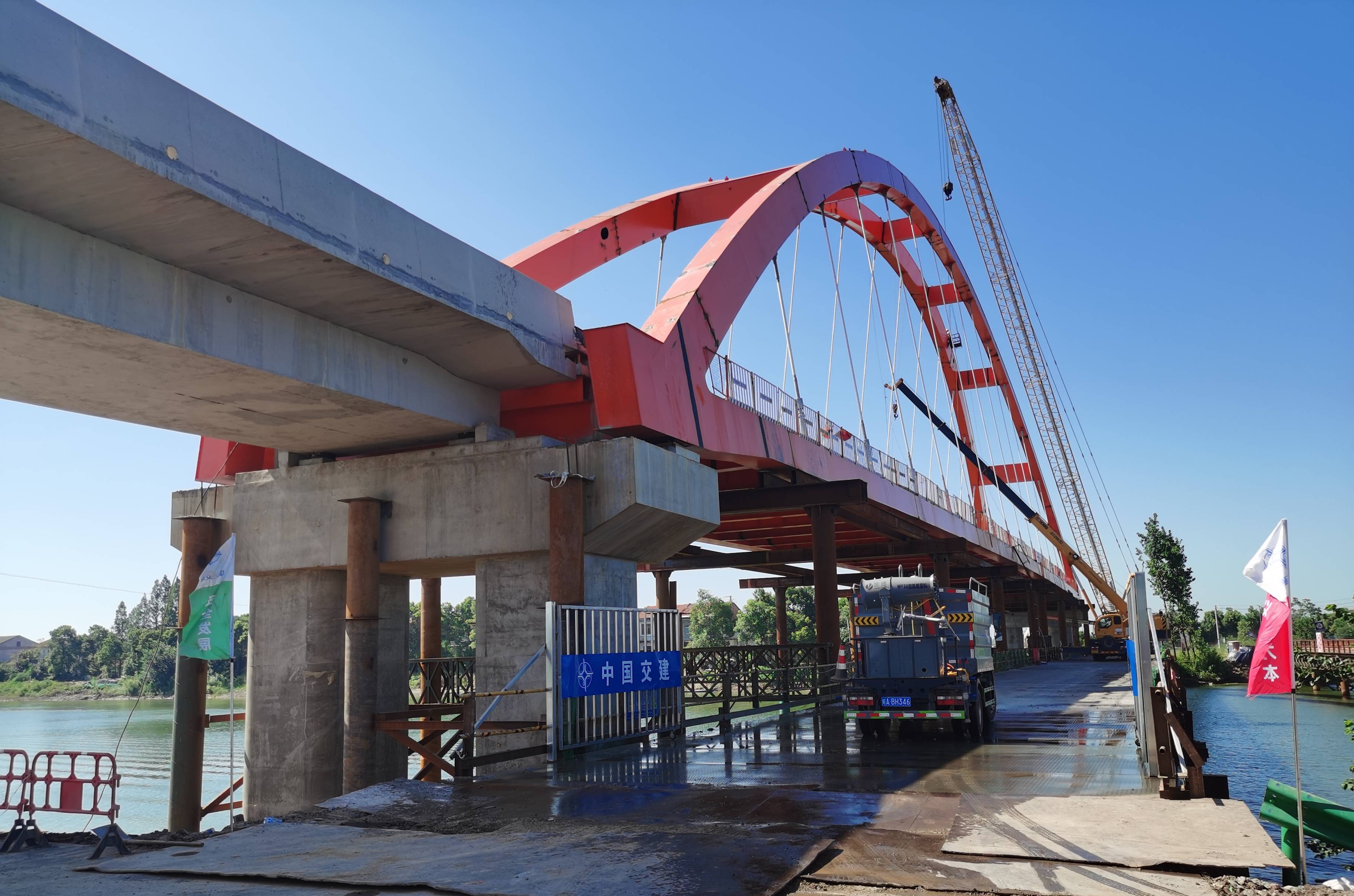 为此,肖初军和陈迅反复沟通,决定采用下沉式钢拱桥结构。“这样一来,大桥在做基础施工时,后方厂家便可以同步生产钢结构件,尽可能缩短周期。”陈迅说。