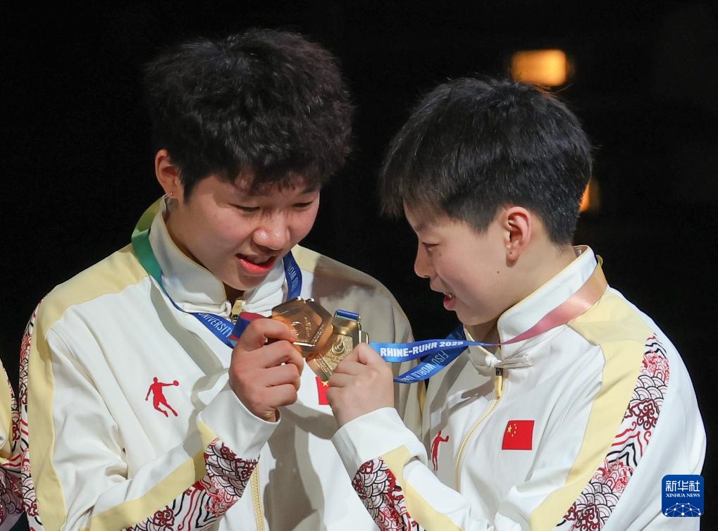 7月25日,中国队球员曹博怡(右)与陈玉婕在颁奖仪式上。新华社记者 张帆 摄