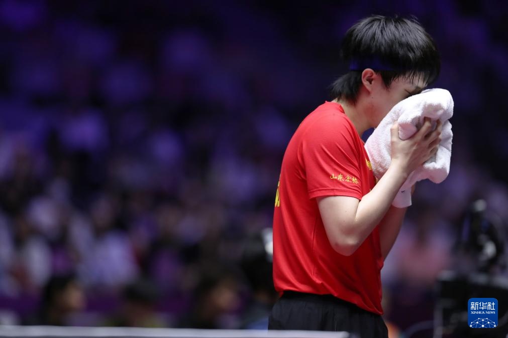 7月26日,山东魏桥·向尚运动队选手王楚钦在比赛中。他在单打比赛中3比1战胜山东鲁能队选手松岛辉空。