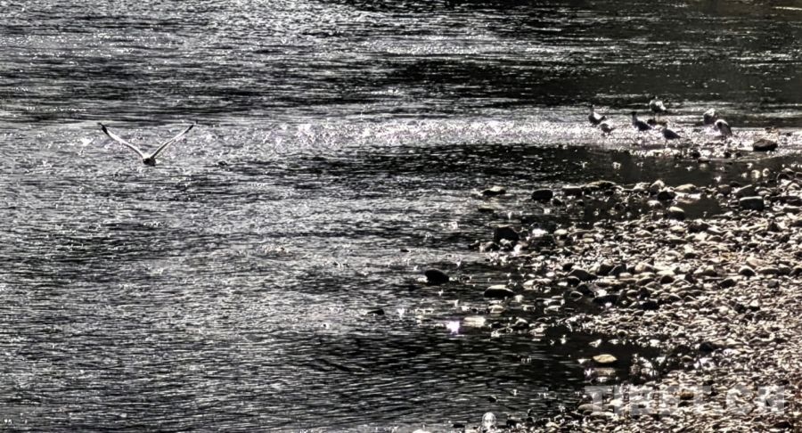 图为拉萨两岛内河绿色生态廊道一隅,成群的水鸟在河边栖息 摄影:刘莉