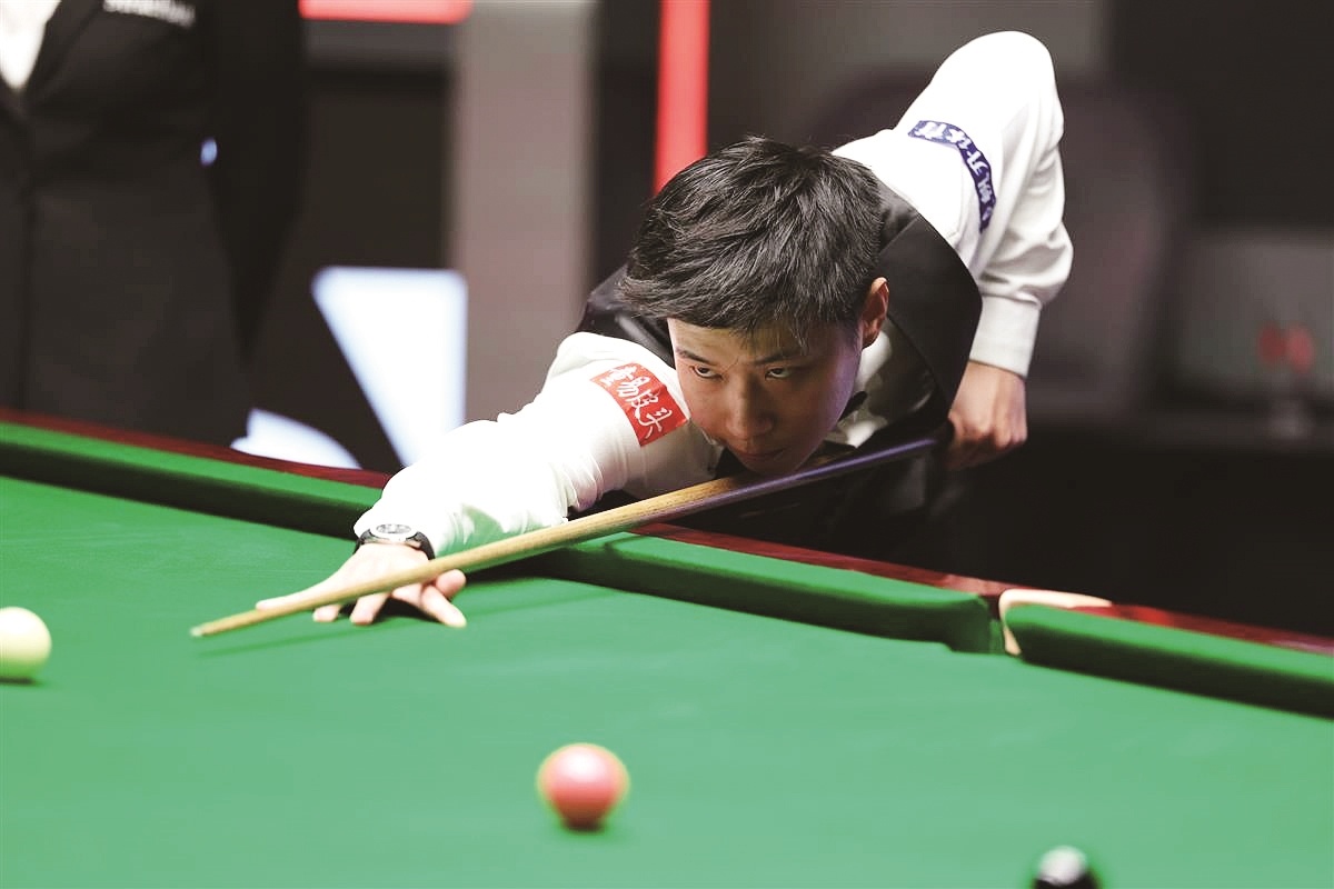 赵心童在世锦赛比赛中 新华社发