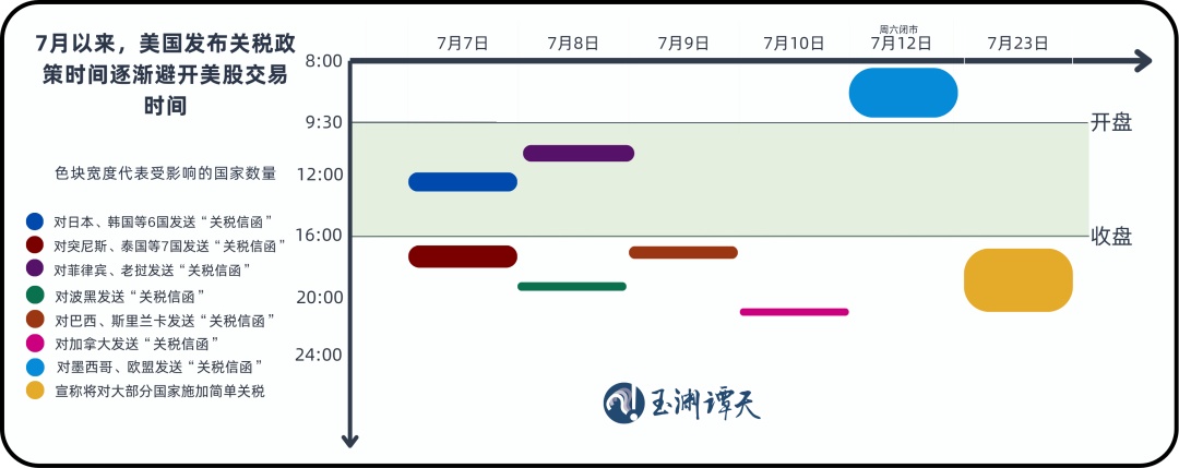 或许也正是因为关税政策对美国自身的冲击要更大,美国政府在前两日公布关税信函之后,后面再发布关税相关政策时,都刻意避开了美股的交易时间段。
