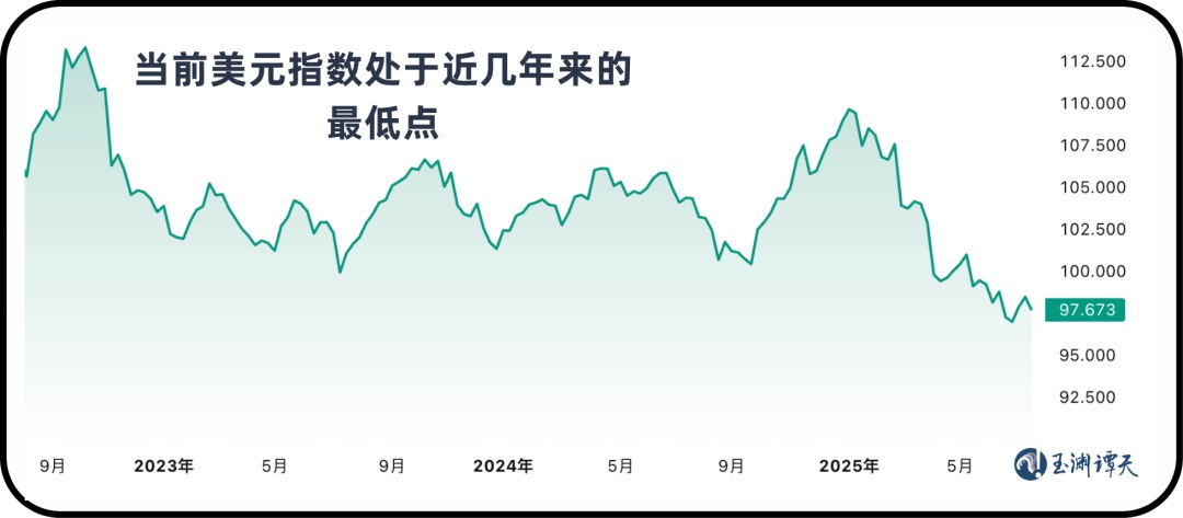 今年以来,美元指数确实不断走弱,已经跌至近年来的低点。而支撑其强势地位的财政、科技、股市这三个元素,也开始显露疲态。