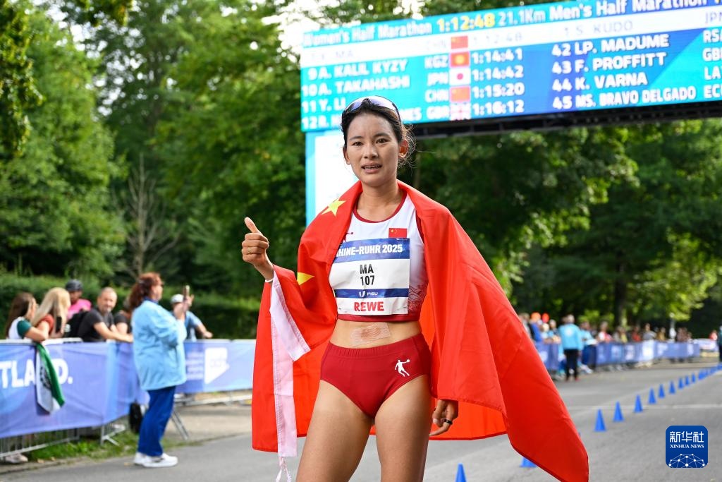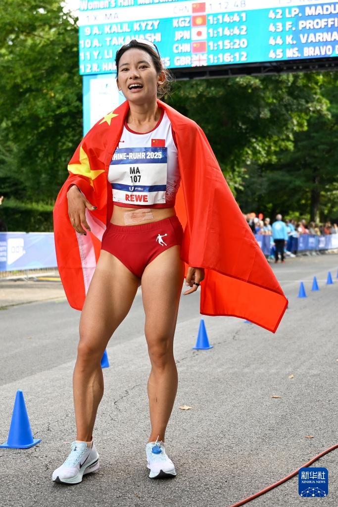 当日,在德国波鸿进行的2025年莱茵-鲁尔世界大学生夏季运动会女子半程马拉松决赛中,中国选手马秀针以1小时12分48秒的成绩获得冠军。