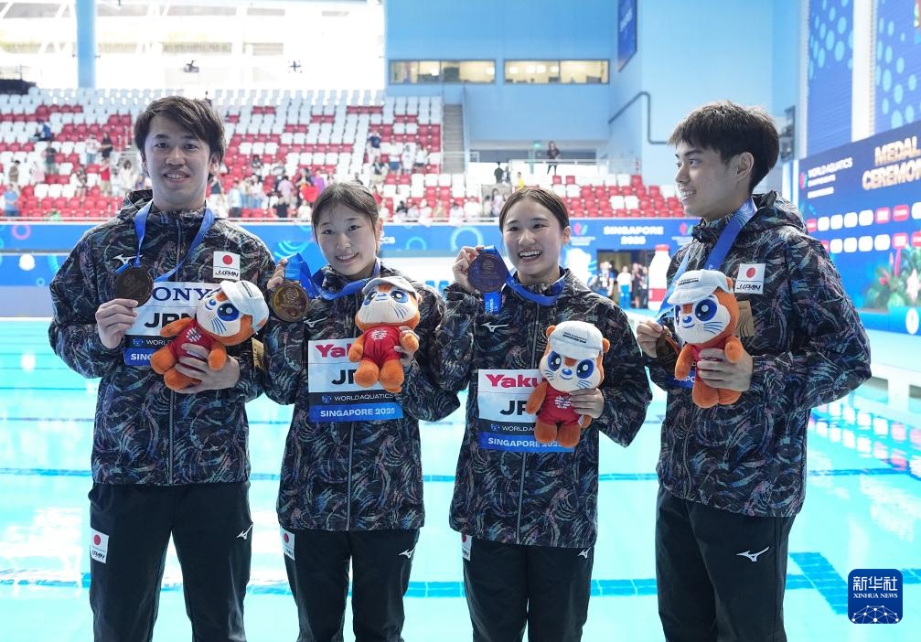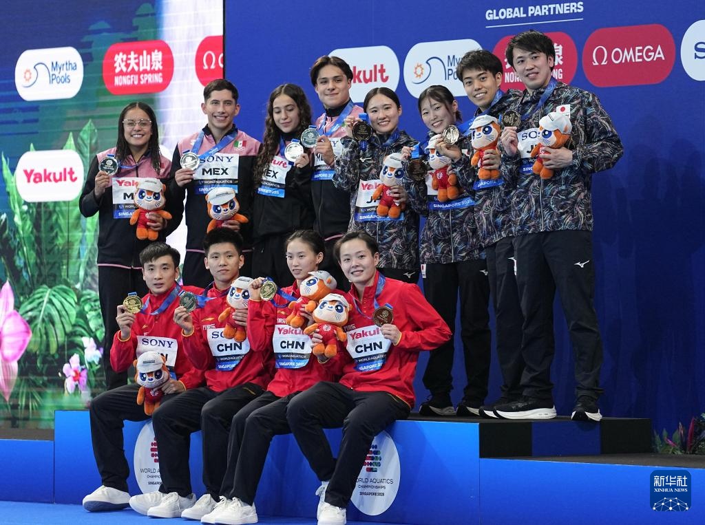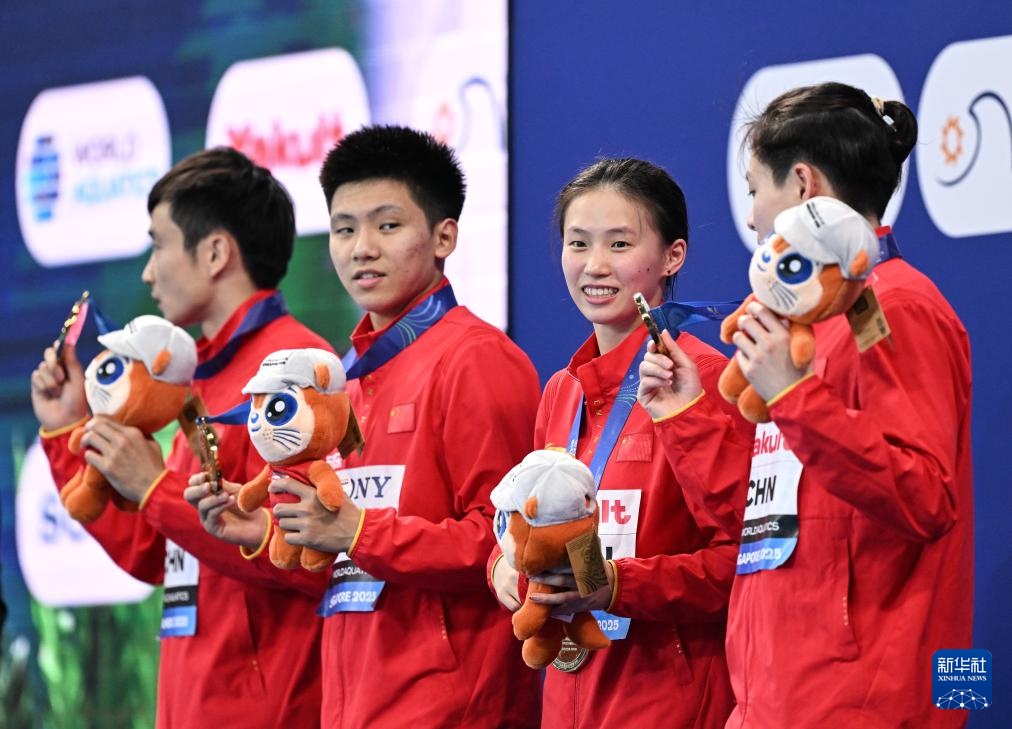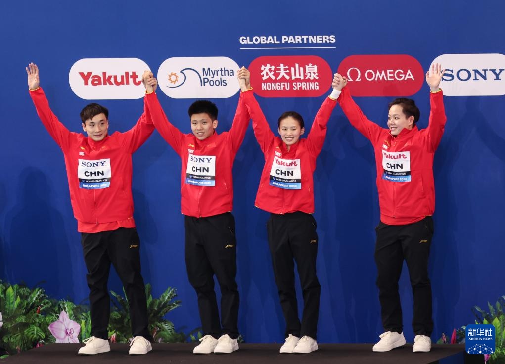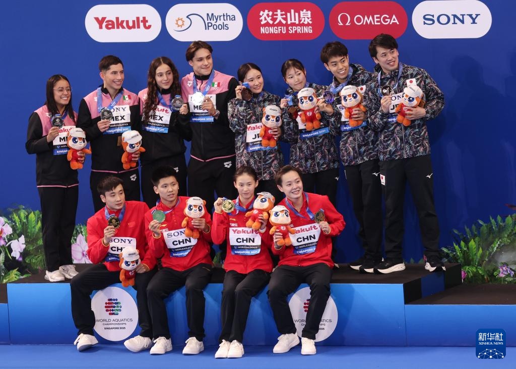 当日,2025年世界游泳锦标赛跳水混合团体决赛在新加坡举行。