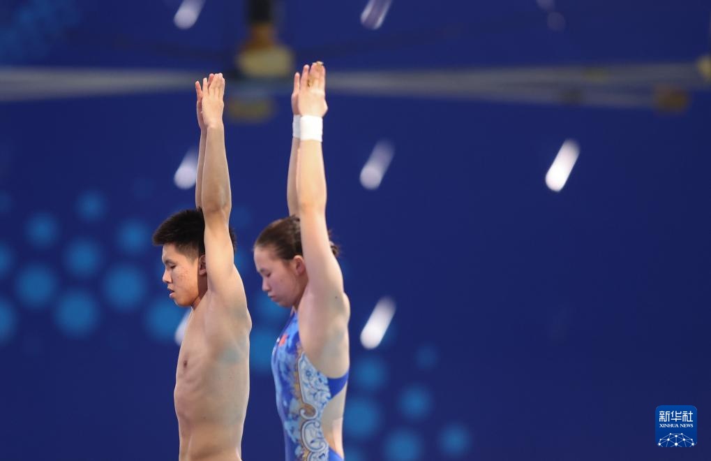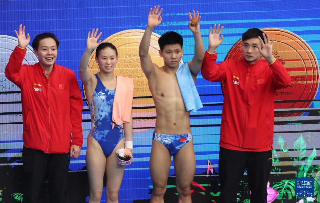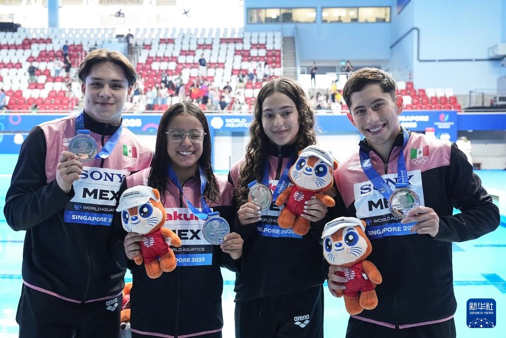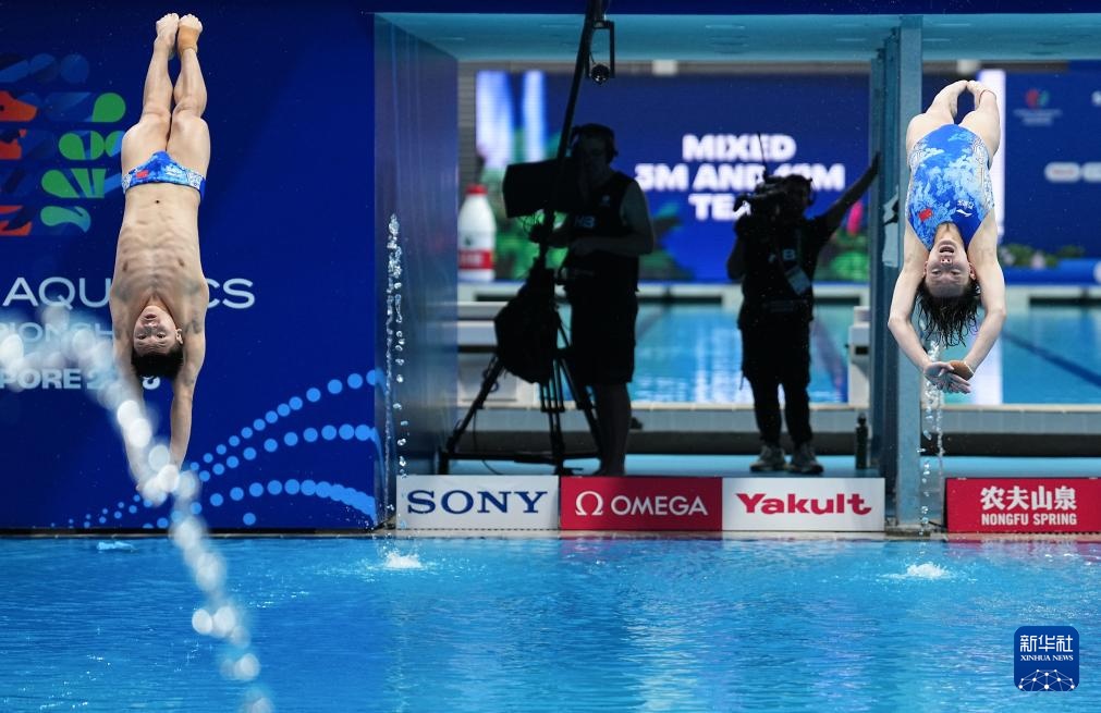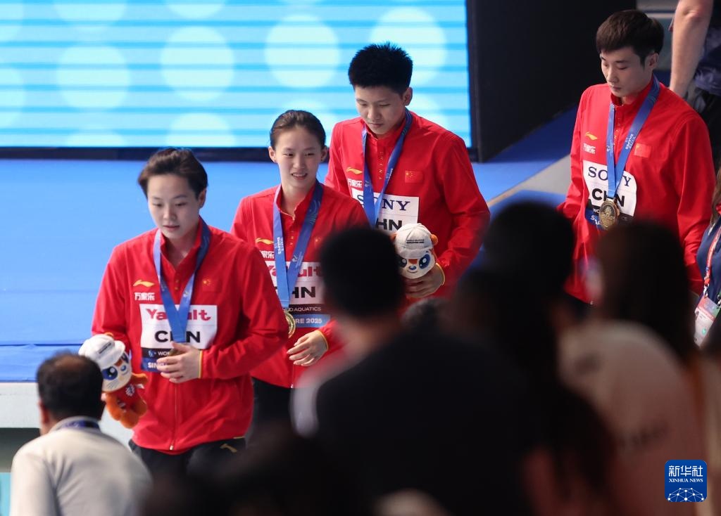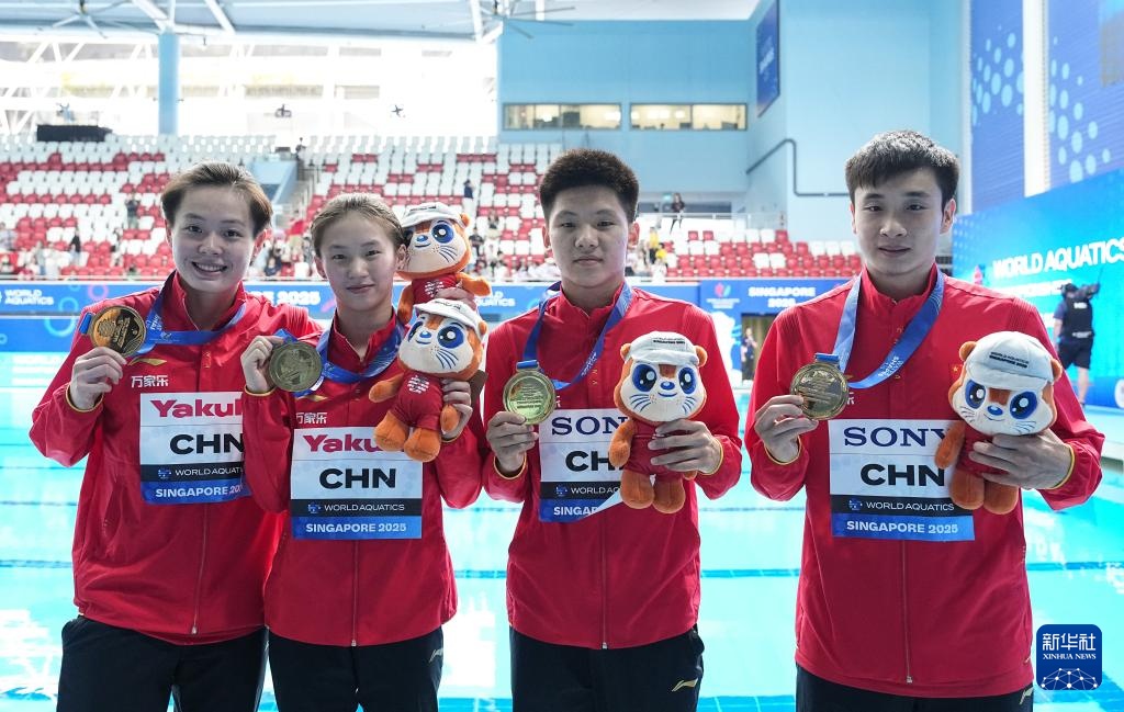 当日,2025年世界游泳锦标赛跳水混合团体决赛在新加坡举行。