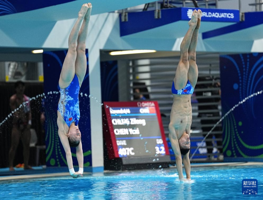 7月26日,中国队选手程子龙(右)/陈芋汐在比赛中。