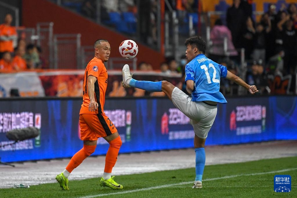 7月26日,深圳新鹏城队球员张晓彬(右)与云南玉昆队球员韩子龙在比赛中拼抢。