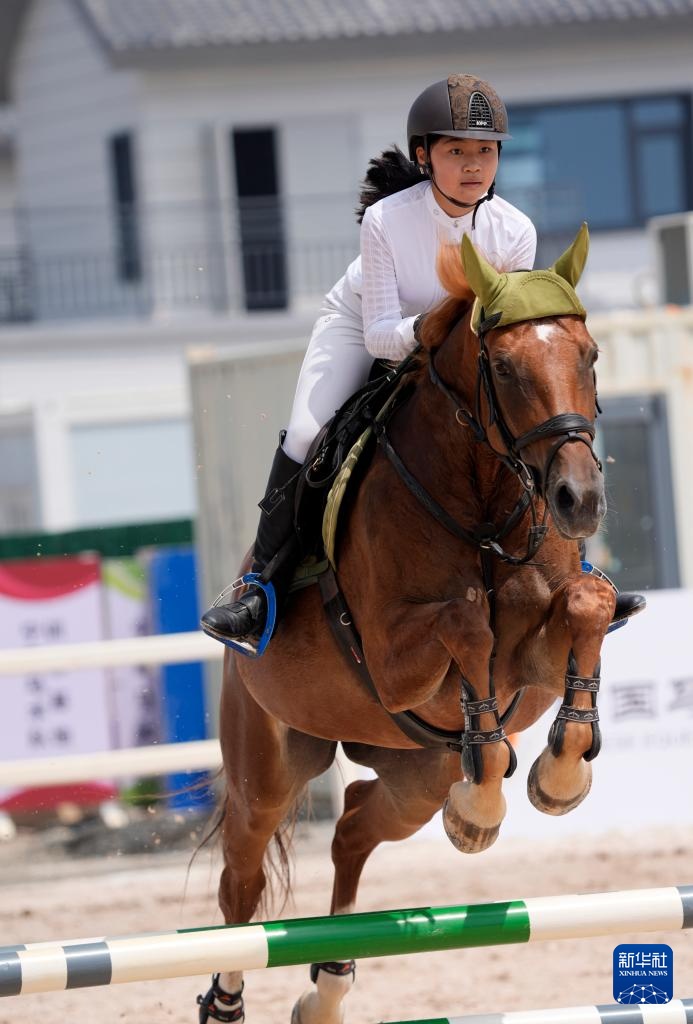当日,2025年中国马术场地障碍青少年冠军杯赛在宁夏银川市贺兰县常信乡开赛。